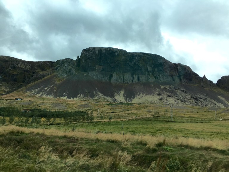 It’s an hour and a half drive to our first stop and the scenery is spectacular. It seems to change in only a few kms. From sheer black cliffs to rugged and green hills shadowing what seem to be tiny homes and farms. Living dangerously because landslides of rocks are common. Nevertheless, the homes face boldly in the other direction as if not to care what is looming behind them. In fact everywhere feels like it should be uninhabitable but the Norse are conquerors of nature as well as other countries. I mean the perfect example is the farm living in the shadow of an erupting volcano. That’s a big YOLO if you ask me! Or perhaps they are just stubborn. I wouldn’t want to move either if I lived here.