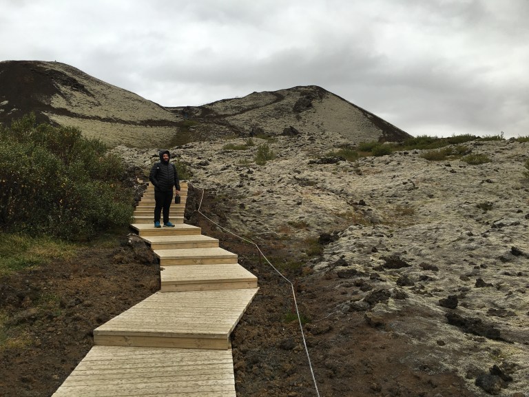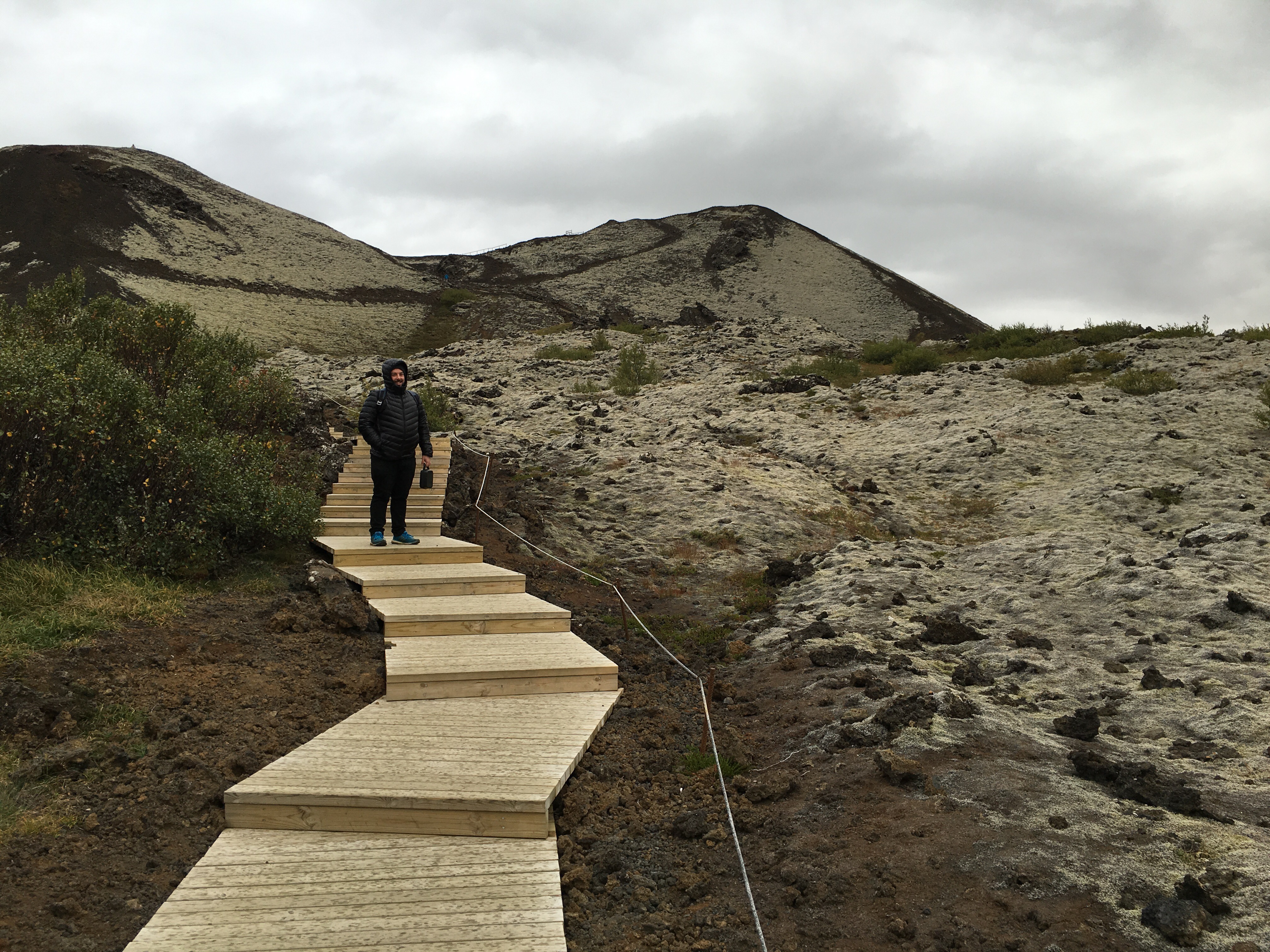 The landscape changed yet again and we were surrounded by moss covered scoria. Deciding to investigate further resulted in a climb (for Josh) in the rain to three craters that are part of the Ljòsufjöll volcanic system that belongs to the Snæfellsnes volcanic zone on the peninsula. The lava is alkali olivine basalt for those interested in that sort of thing. Really cool to look at especially with the mosses that have grown on it.