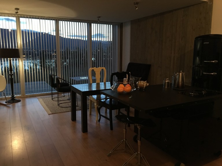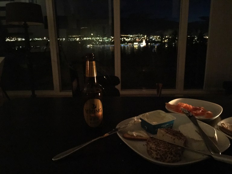 We have arrived! Our AirBnb is pretty blackulous. We are going to eat cheese and crackers and drink beer on the deck overlooking the fjörd and hope we see some aurora tonight.