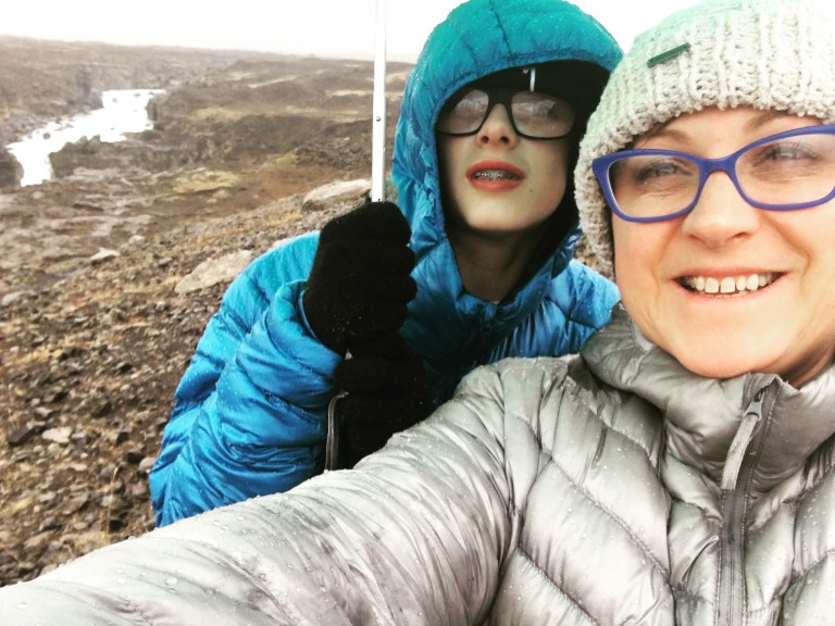 Still so wet but got close enough for the obligatory photo. Josh ventured further. My puffer jacket is wet and it’s not designed for rain so it’s no longer warm 😩