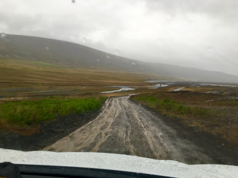 Landscape once again is ever changing. There are levels of shrubbery (stunted birch and fir) and green and then suddenly it’s like a moonscape! It’s 5c and raining so the chill factor is BRRRRRRRRR. We got wet just getting out of the car putting our coats on. I even used the umbrella but that didn’t help the sideways rain on my legs. Harry and I got about 500 metres before calling it quits. Took a few pictures of what can only be described as science fictionesque! Even the car park had a strange other worldly feel. We were the only ones here and the toilets looked like something from Lost in Space.