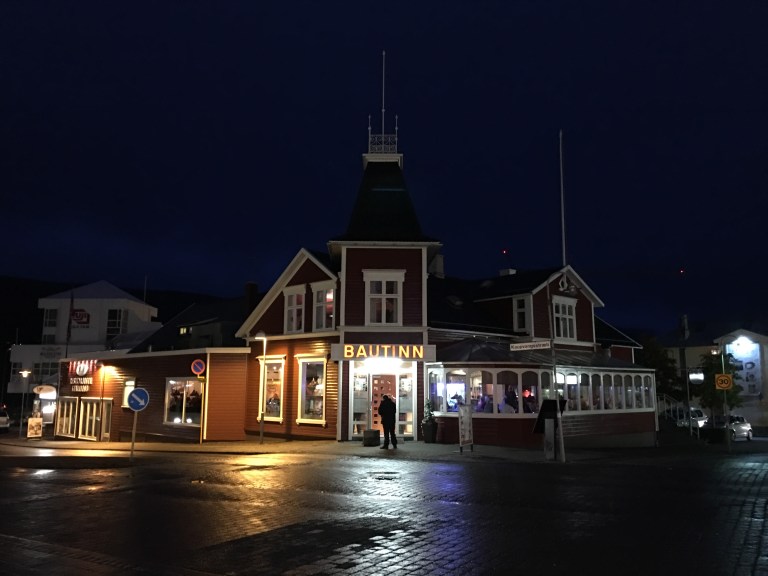 Dinner in town at Bautin. We were not adventurous enough to try horse or whale. I had classic dishes: hashed fish and then styr for dessert.