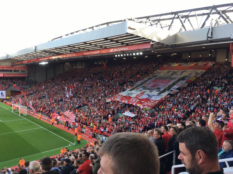 The stadium was full, kick off loomed. Giant banners were making their way through the Kop.