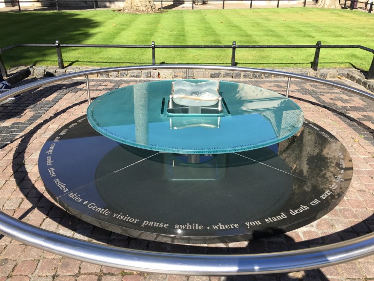 “Gentle visitor pause a while, where you stand death cut away the light of many days. Here jewelled names were broken from the vivid thread of life. May they rest in peace while we walk the generations around their strife and courage under these restless skies.”