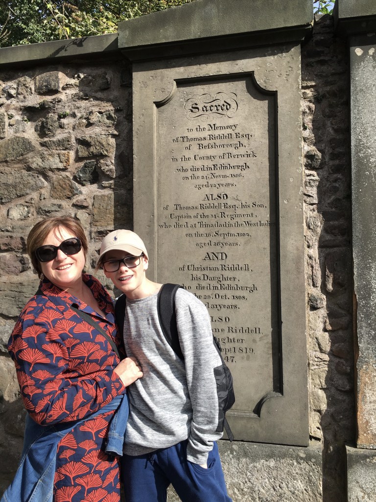 The other grave of note was inspiration for JK Rowling. The little coffee shop where she wrote her books is just around the corner from the church and she would wander the church year and other places looking for ideas. Firstly, through the gates of the graveyard she could see a very posh school, ‘George Heriot’s School’, That was her inspiration for Hogwarts. There are also a number of tombs with names or stories very familiar to fans: Professer Mcdonigal, Hermione, and of course Tom Riddle AKA Voldemort.