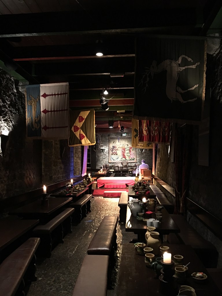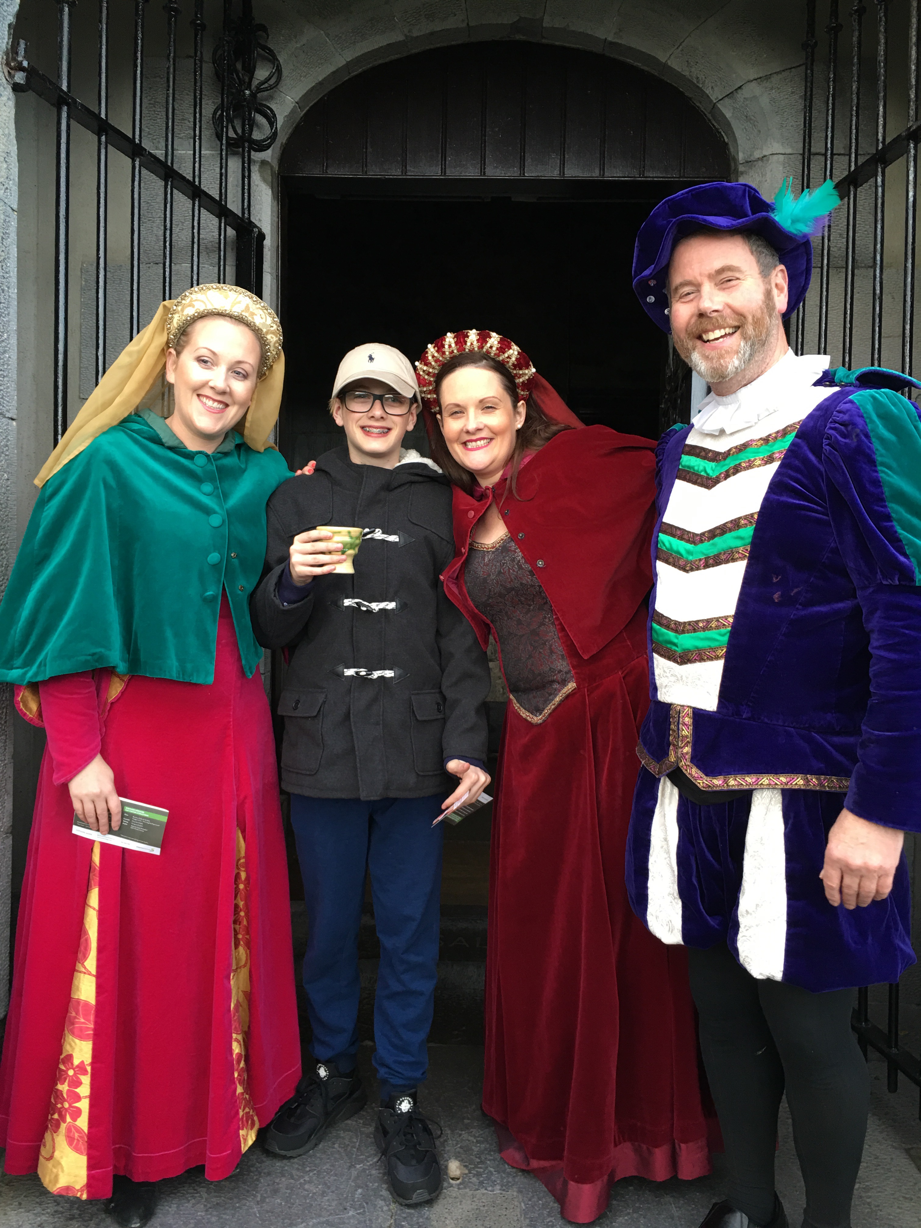 The Castle banquet featured a colourful programme of music, song, and dance toasting the Kings of Ireland. We were greeted at the main door of the castle by the Earl’s Butler and the Ladies of the castle who directed us to the Dalcassian Hall where we savoured a goblet of mead (honey wine). This was rather nice so I polished off Josh’s as well.