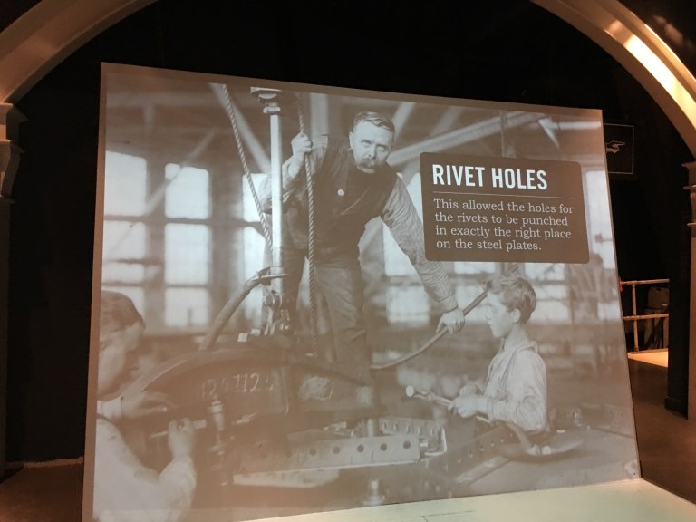 The information about the plans and the workers was detailed and informative and included a ride through a section of iron works where the rivets in the great ship were hammered in.