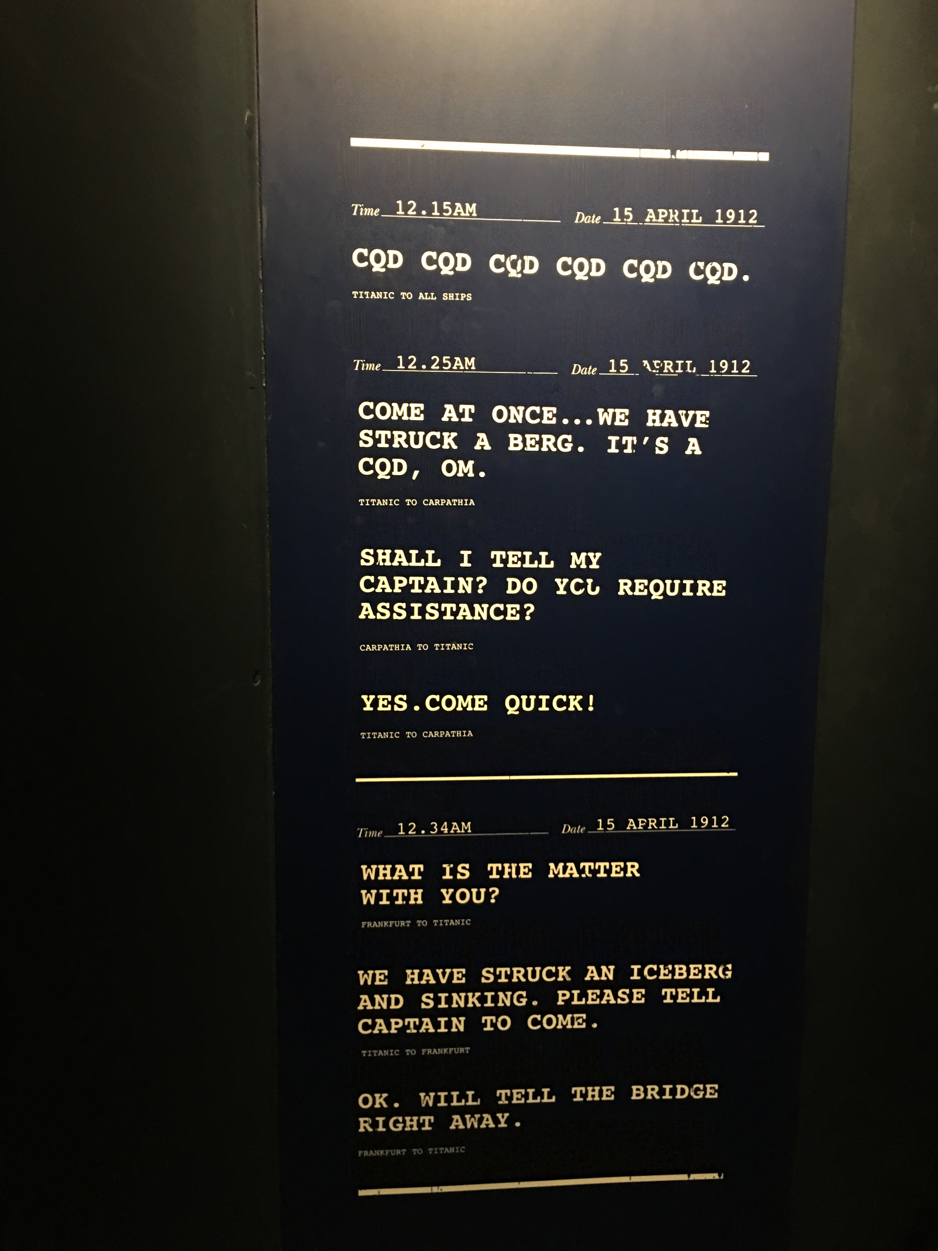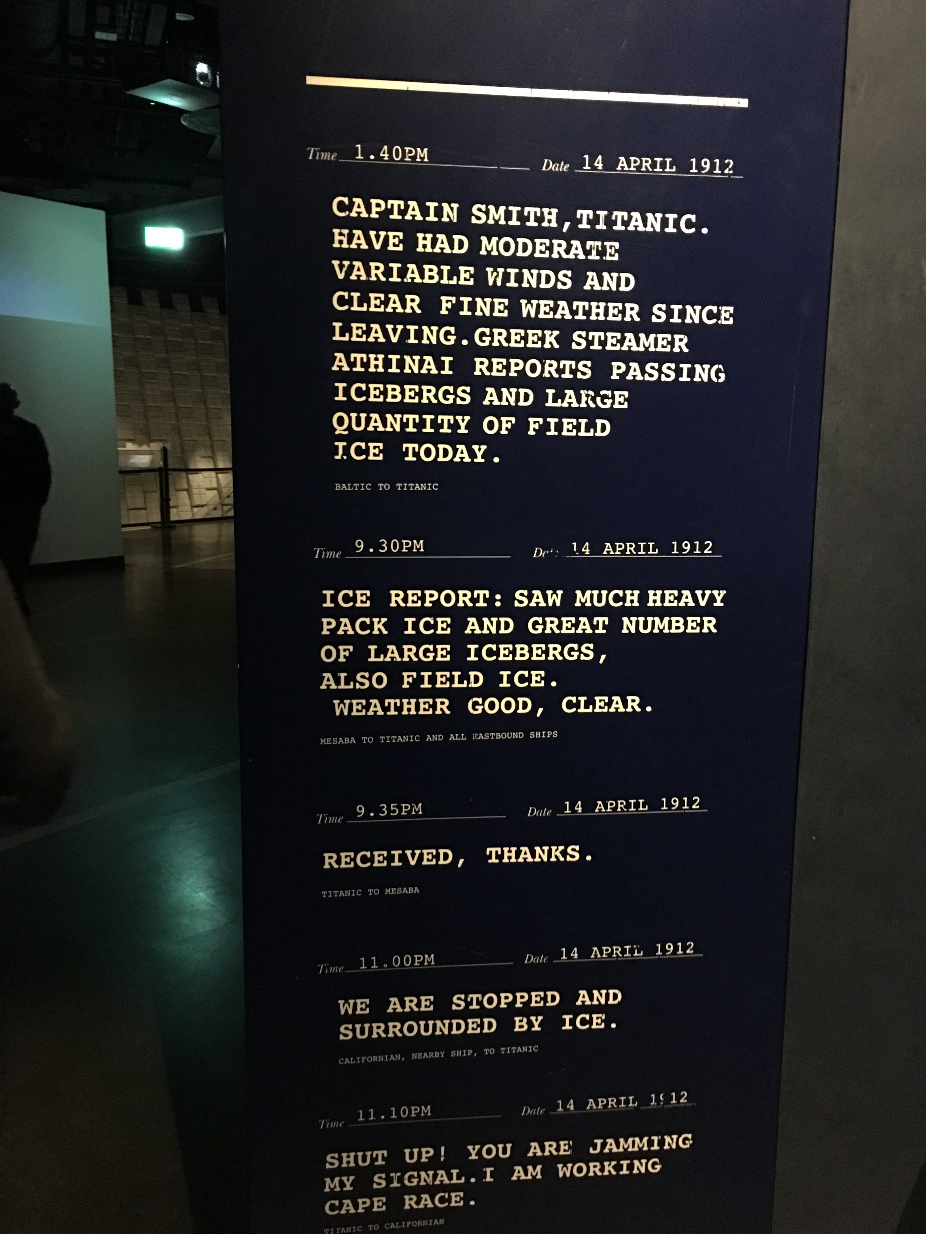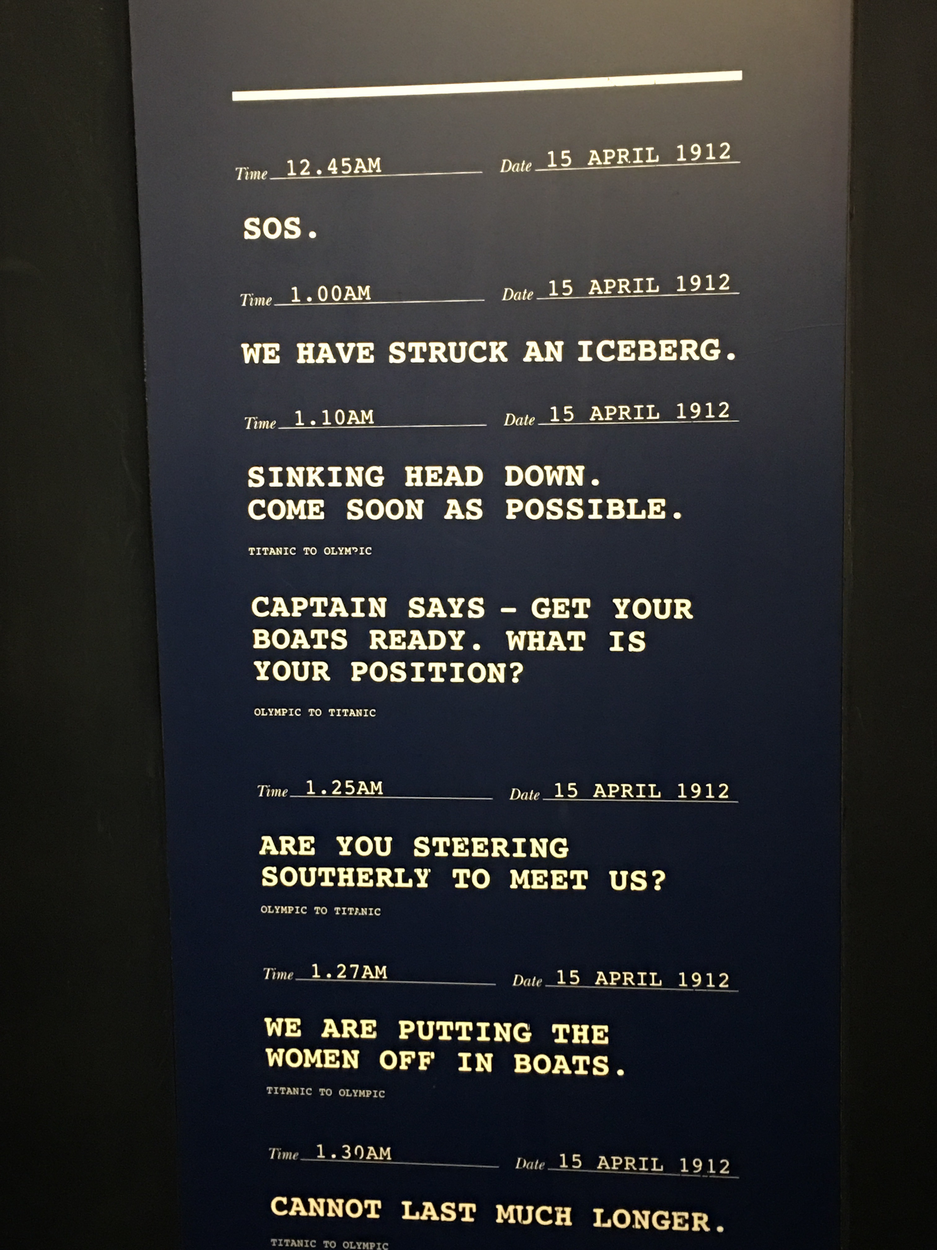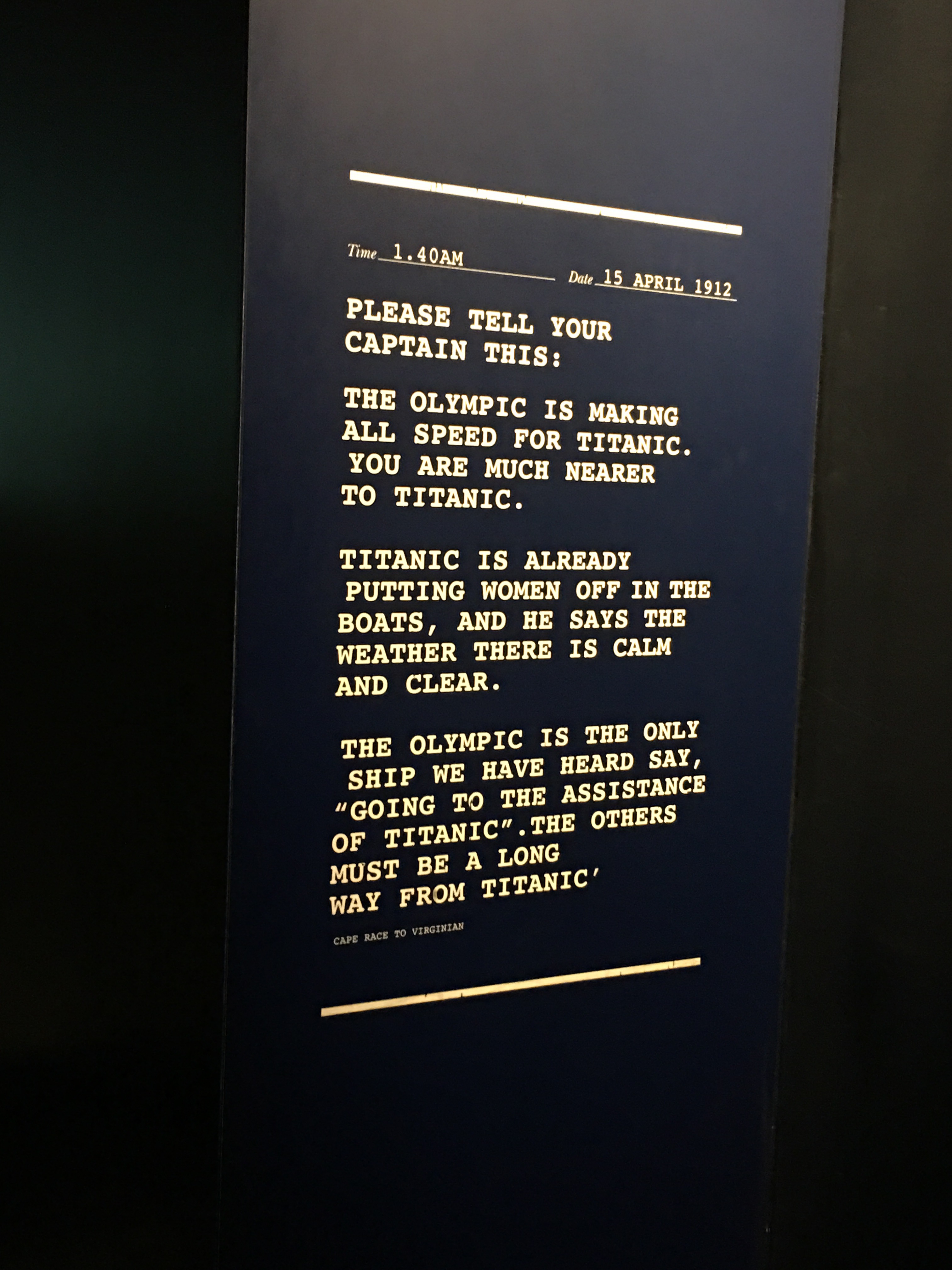 The Marconi messages were heartbreaking to read. There isn’t much I don’t already know about Titanic due to a major obsession I had with it when the 1996 film Titanic came out (my 30th birthday was a White Star Line extravaganza!), but it was so moving to be on the spot where she was made and launched into the waters before making her way to Southhampton and ultimately her doom.