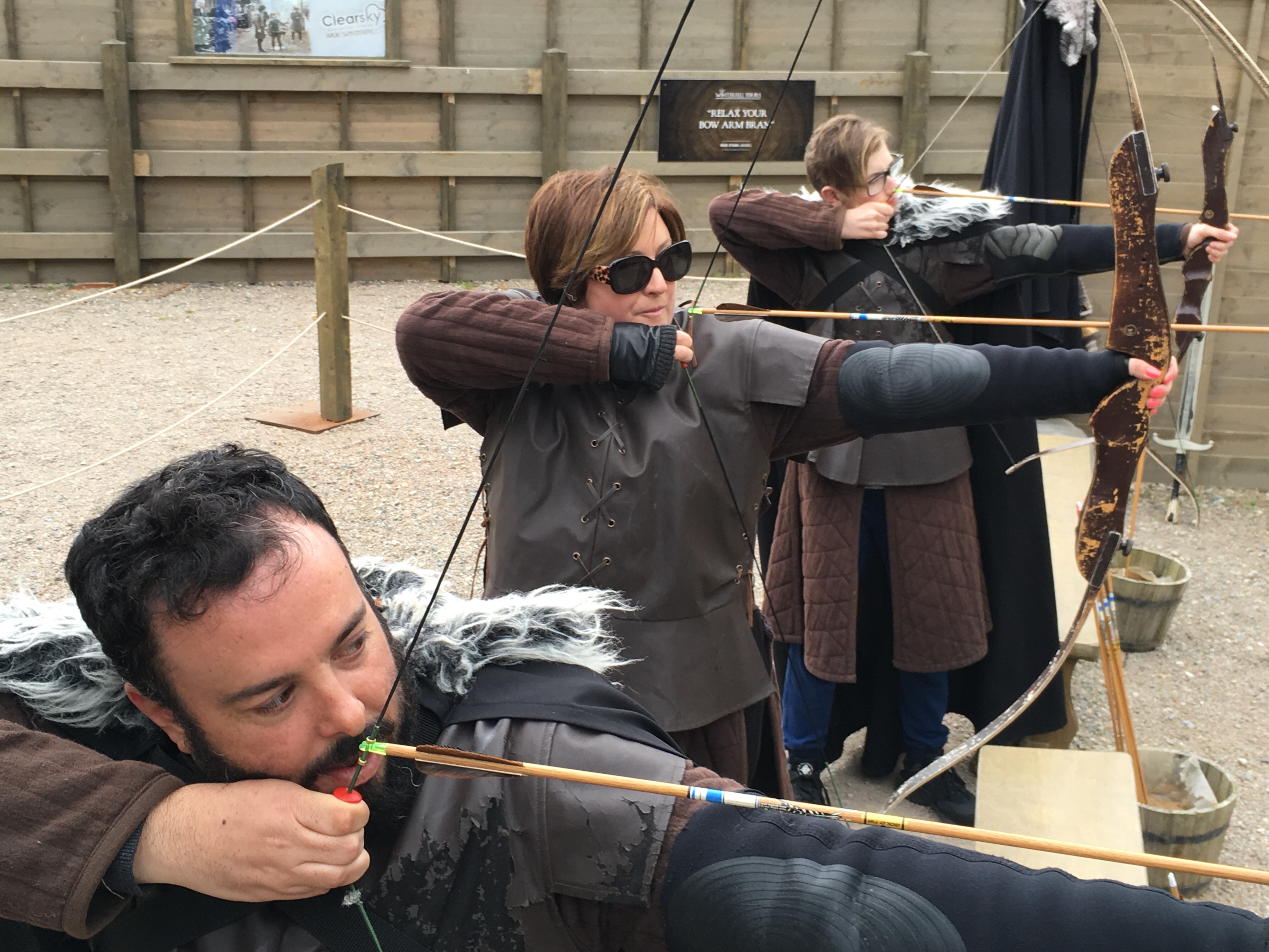 The Archery Range Film Set still stands in the Winterfell Castle courtyard where the filming originally took place. Winterfell’s Master-at-Arms greeted us and we got to dress up in character costumes. We stood exactly where ‘Jon Snow’, ‘Robb & Bran Stark’ stood and enjoyed the thrill of firing live arrows. Harry ended up quite good at it. Relax your bow hand!