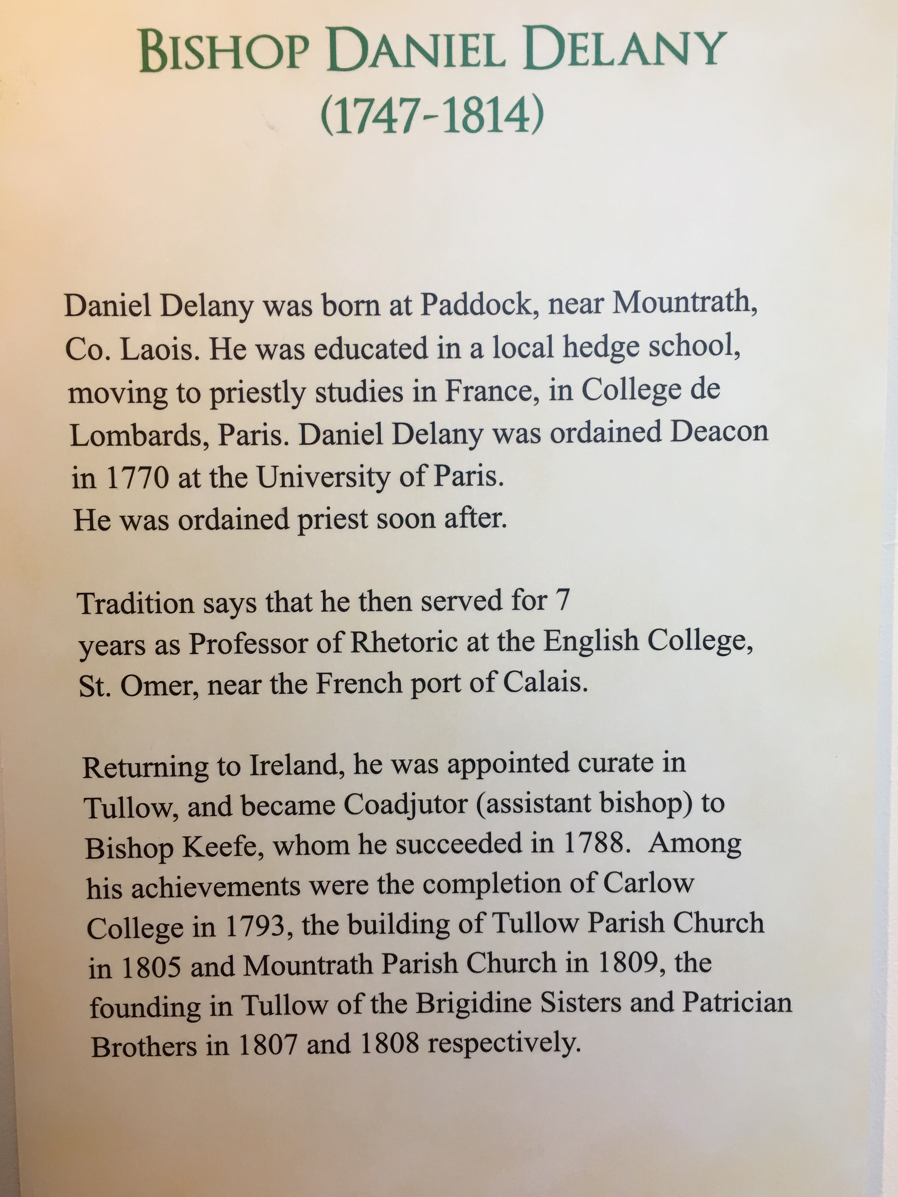 Into Thai time Daniel wa born and became a priest and reformed the Sisters of St Brigid on 1 feb 1807. Those first women were taught by Judith Wogan – Browne who found it difficult. She is buried with the Brigidines although she never became a nun.
