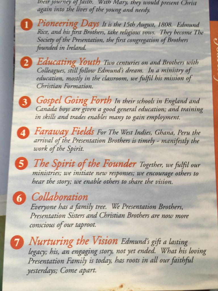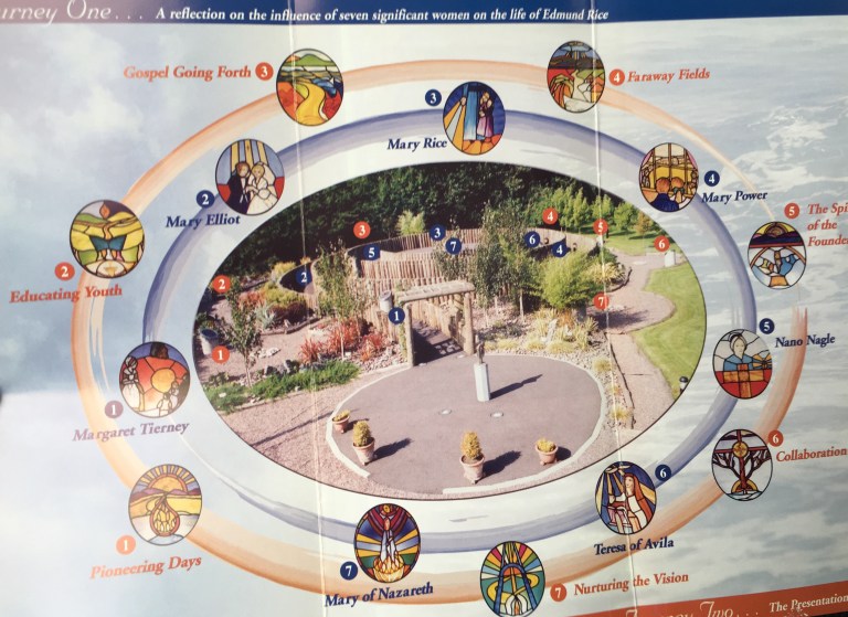 The brothers have a strong connection. To the sisters therefore a heavily feminine emphasis. We walked the circular two-part meditation garden — the first part invites us to contemplate and honour the seven women who played a role in Edmund’s life, and the second part relates the story of the Presentation Brothers.