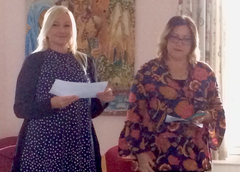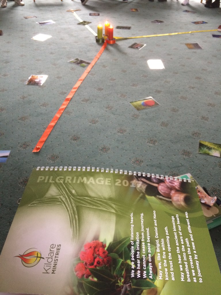 We created a beautiful centrepiece with the Kildare Ministries colours and candles that shaped an early version of a Brigidine cross that also represented the joining of the three streams we heard about on Saturday: Megolithic, Celtic and Christian spirituality.