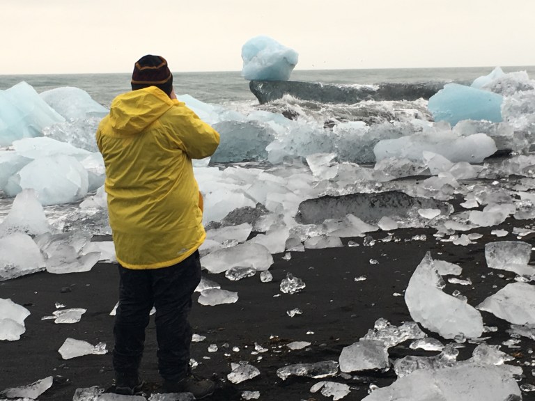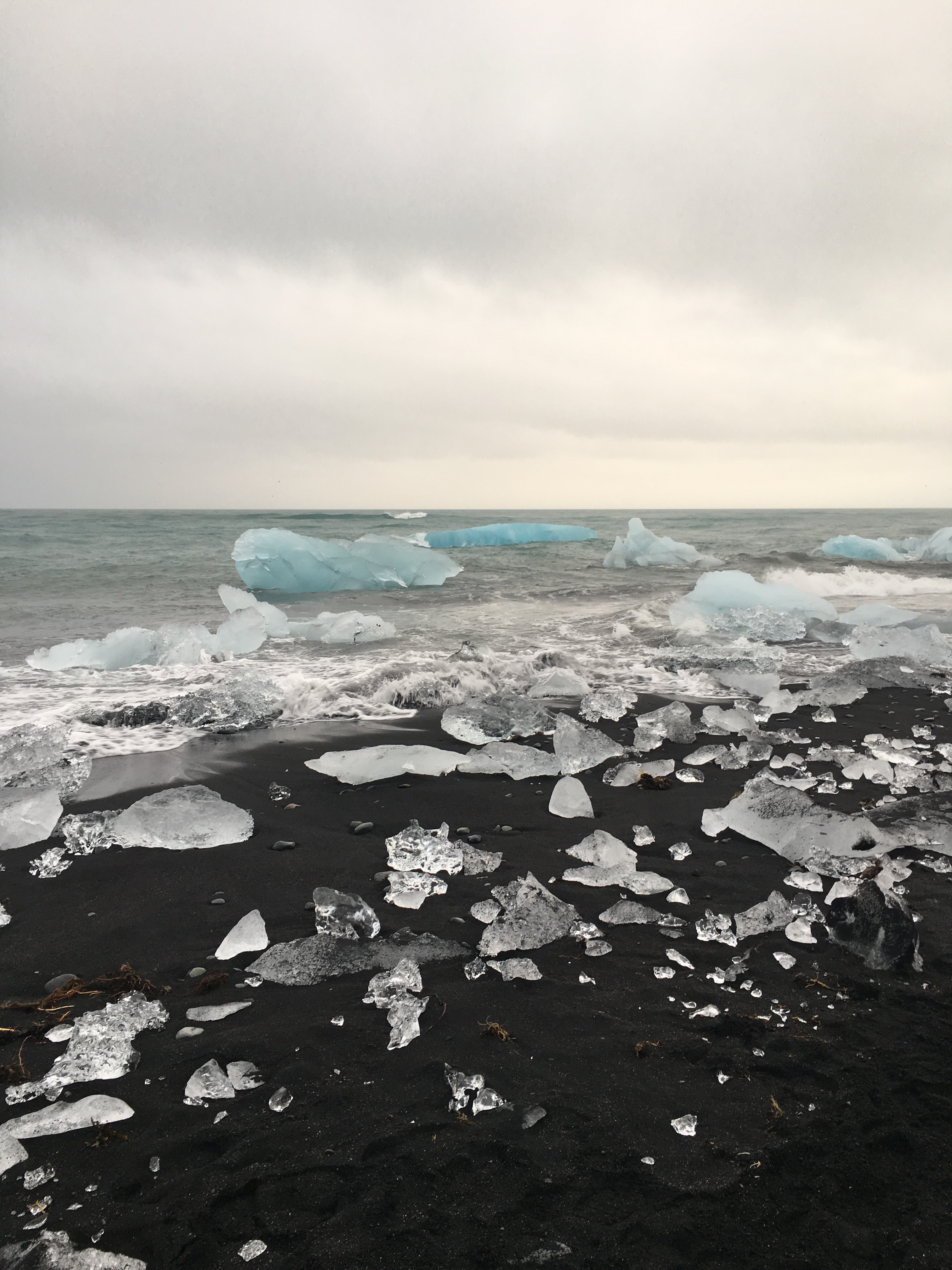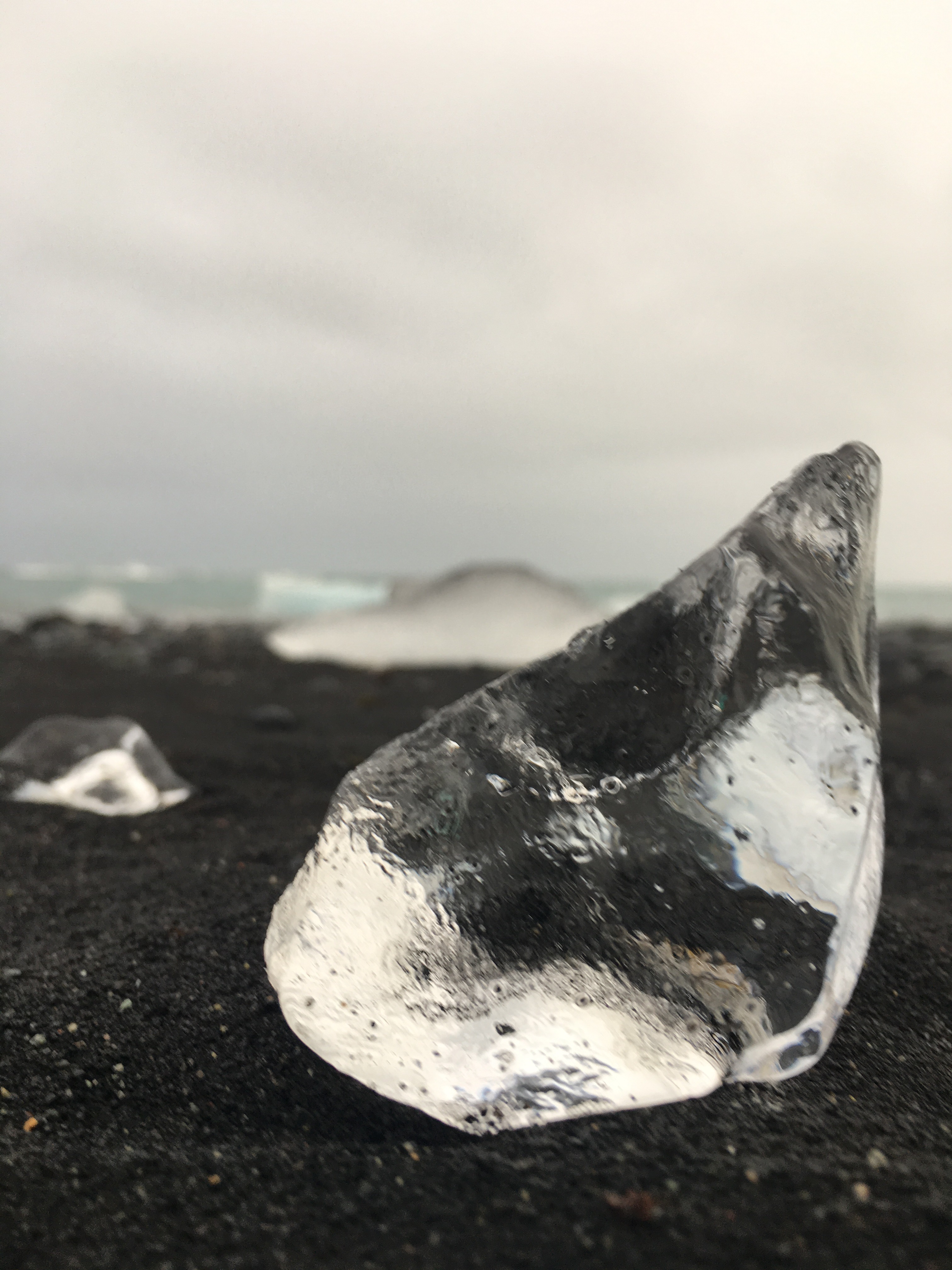 This spot was magical! Piece of the glaciers break away and drift out onto the beach where they bob and sway and melt. There are huge ones and tiny jewel like ones. Blue ones, white ones and crystal clear ones. We even saw a seal swimming among them.