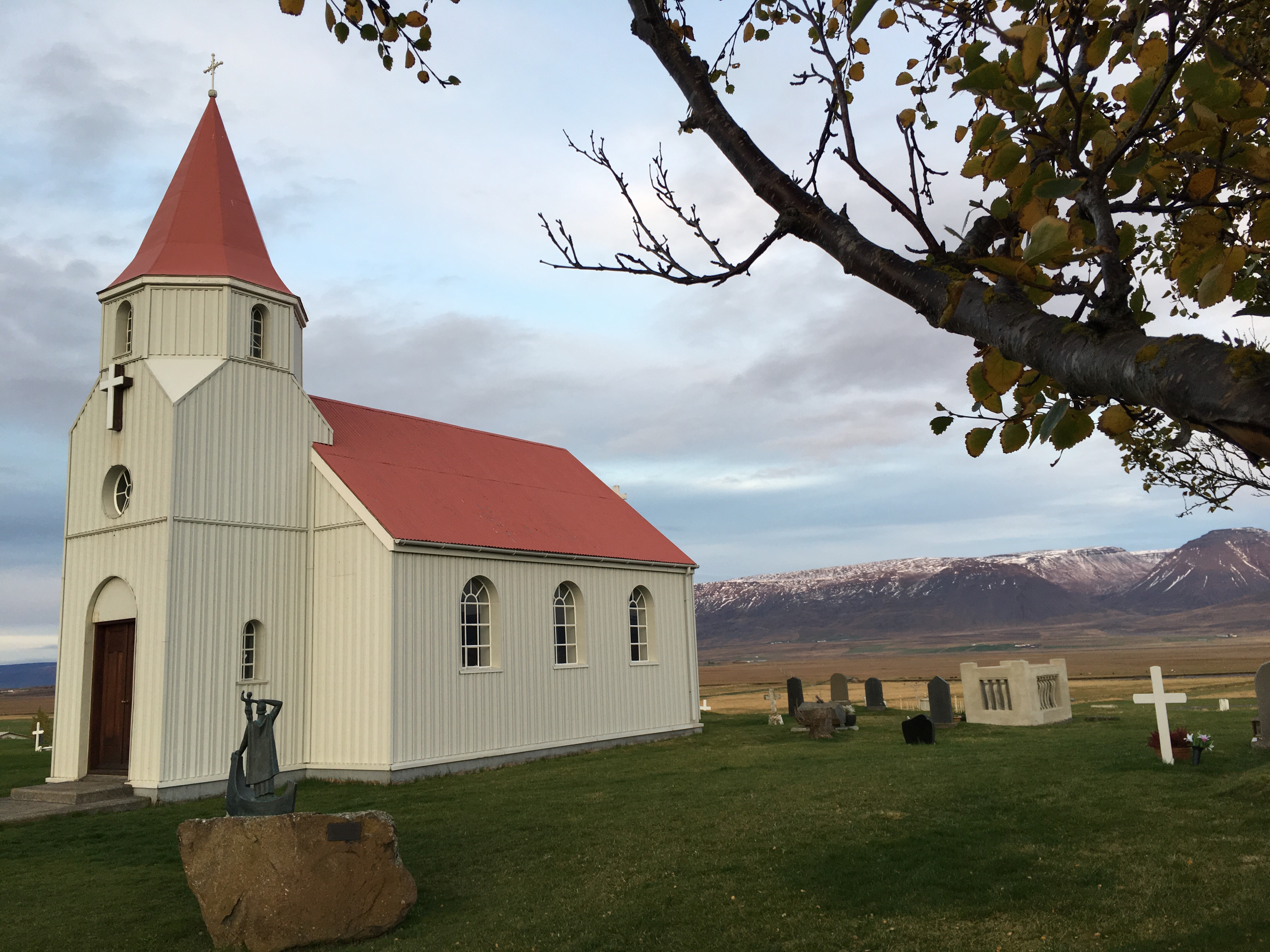 Parts of the farmhouse date to 1750 while the youngest parts are 1870s. The church beside it was built in 1926. It’s the type of home depicted in Burial Rites, the novel by Hannah Kent.