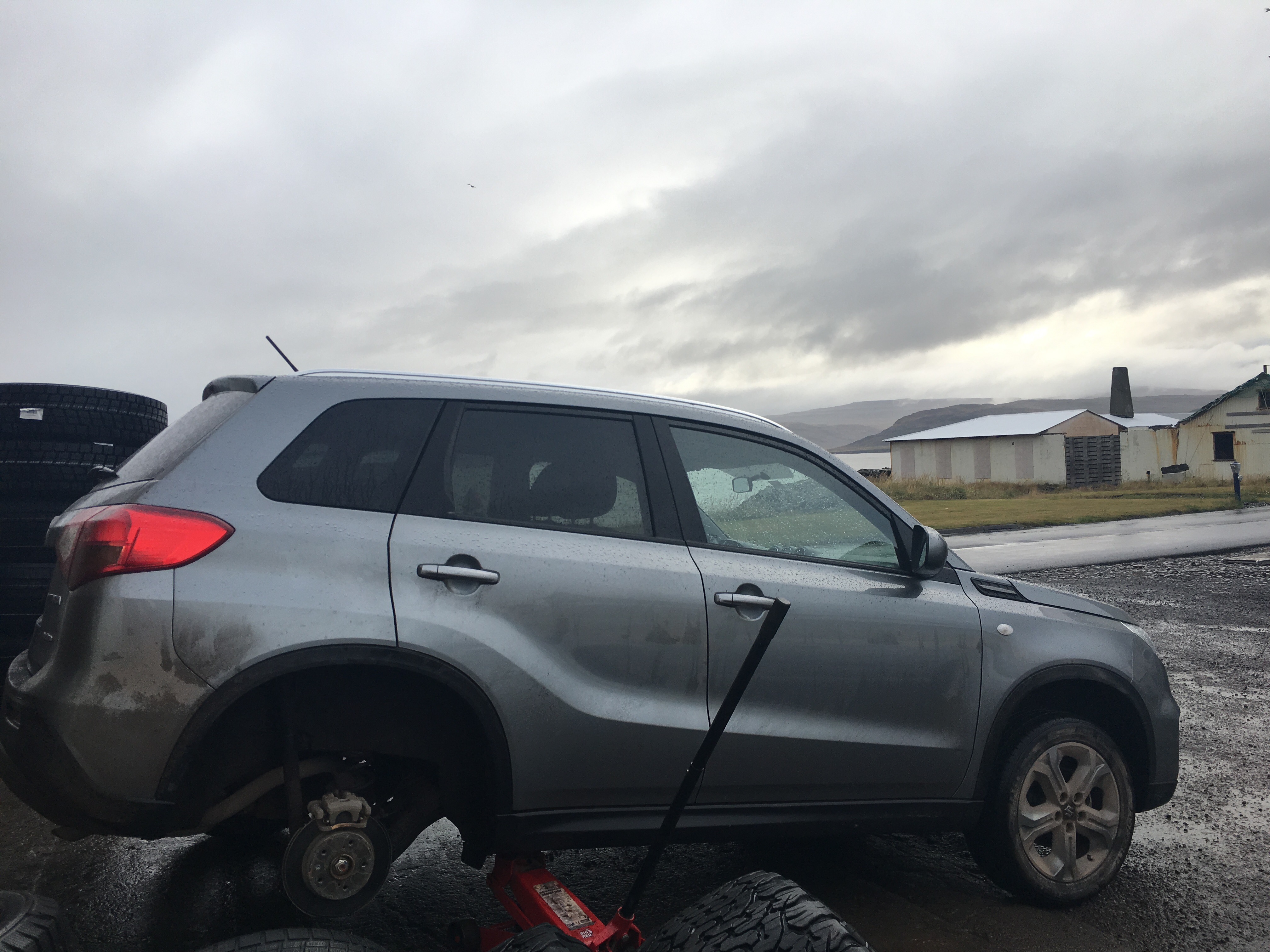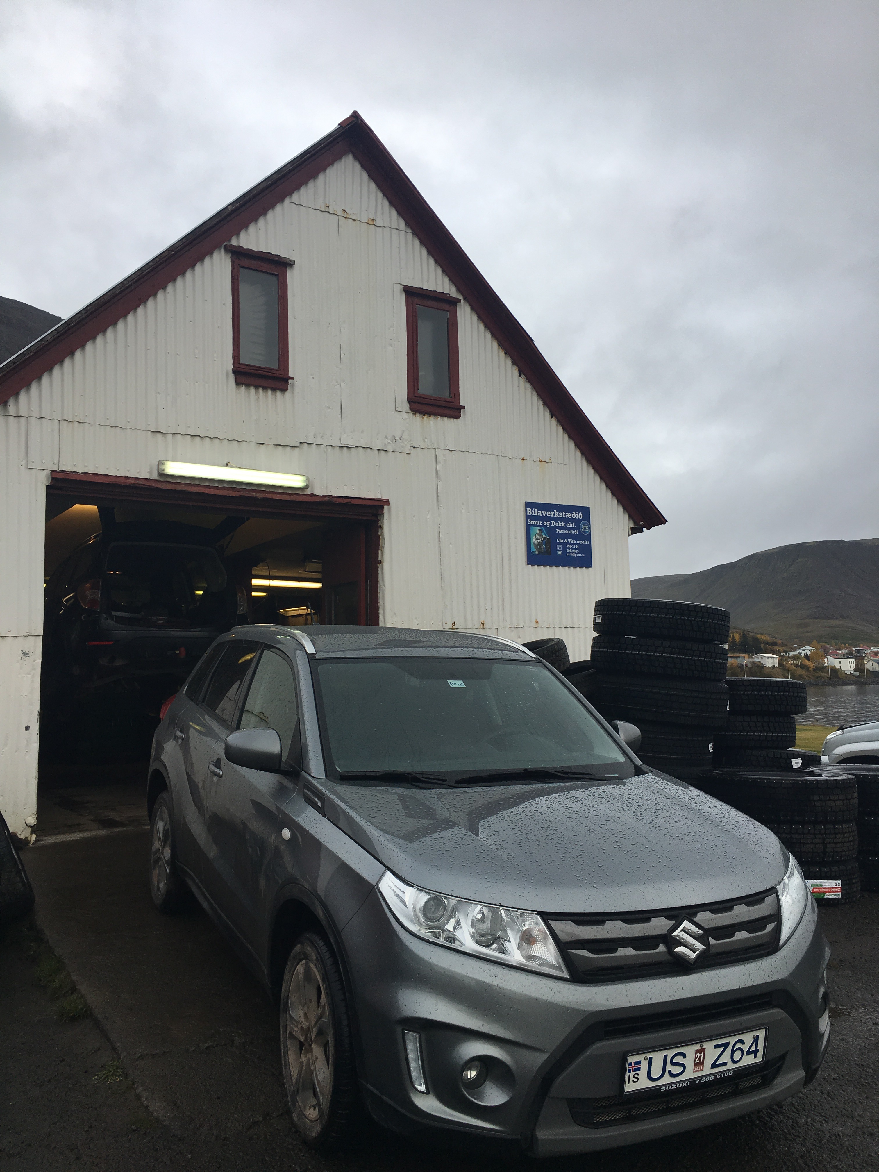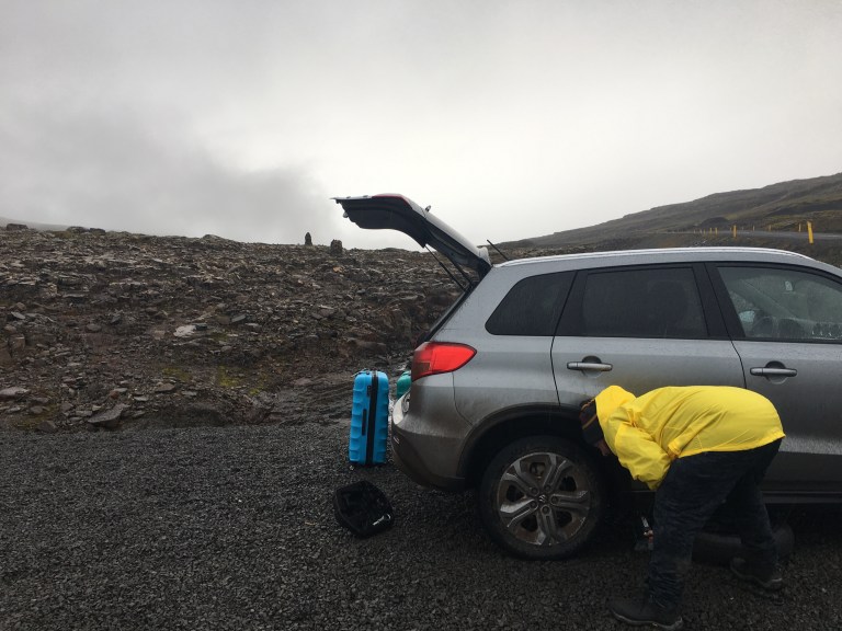 By now the scenic picnic spot by the waterfall is becoming less idyllic. The waterfall was so noisy and was reminding me I needed to pee. The rain had not stopped and our suitcases as well as us, were getting wetter and wetter. I was definitely getting colder. There was low cloud coming in and it was 3 degrees celcius and dropping. Finally we made the call with limited E internet on Josh’s phone to their emergency assist who told us to phone the car hire people! They told us to drive back to the town where we were last night which we did. Stopwd at a service station to get the name of a tyre mechanic. Tyre pressure has dropped to PSA 27 by the time we got there. The lovely guys there saved us and sent us on our way.
