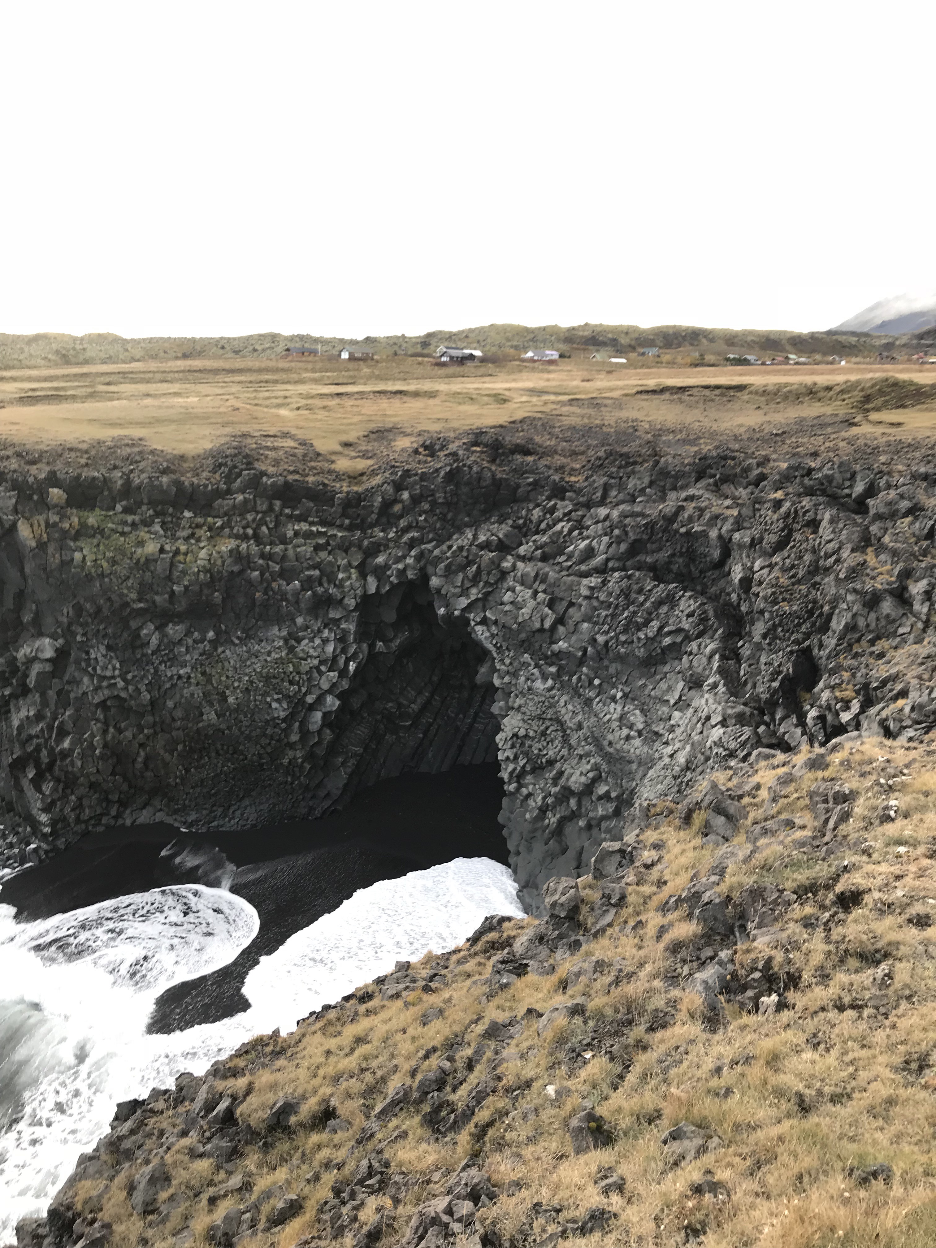 A relaxed start today as it is only an hour and a half to our next hotel but lots to as in the general area. We are in the Snæfellsnes region – Snowy Mountain Peninsula. The cloud is low today so the tops of the mountains aren’t visible. The weather seems better than yesterday. It’s not raining but it is SO windy making the 5 degrees seem like 0 degrees. I nearly got blown away when going to the car. Must remember to hold onto the car door tightly when opening!