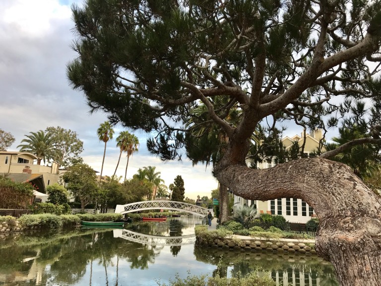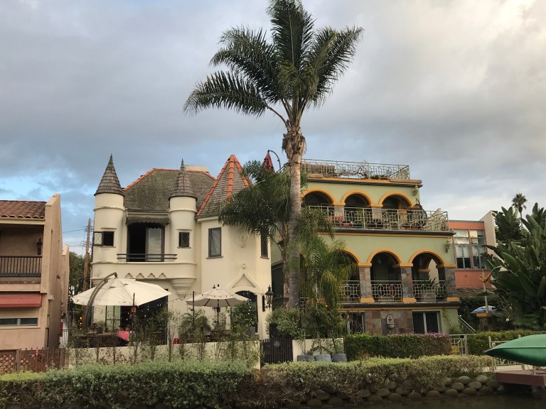 Eventually, Kinney gained control of city politics and had the name changed from “Ocean Park” to “Venice” in 1911. Kinney was also allowed to build a 60-foot (18 m) breakwater to protect his facilities from storm tides. thanks Wikipedia.