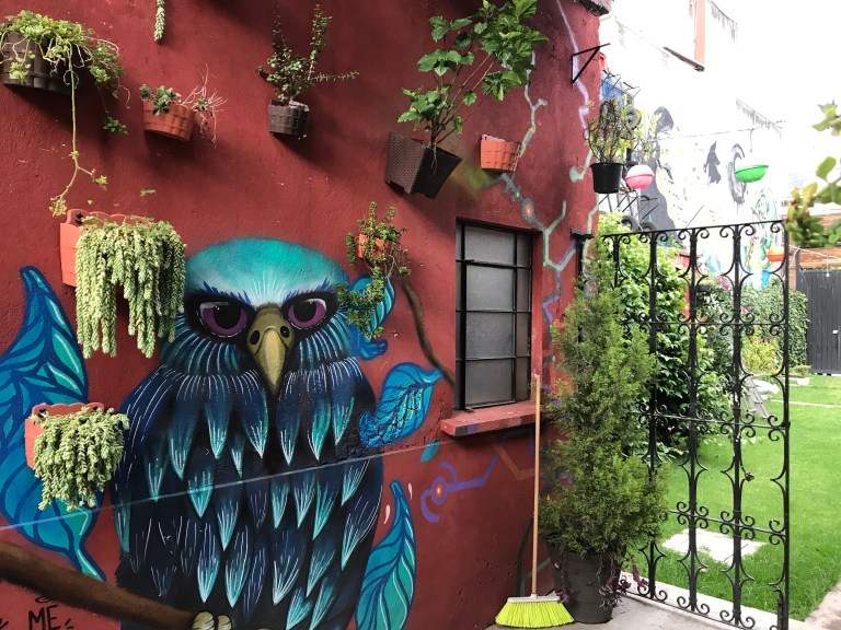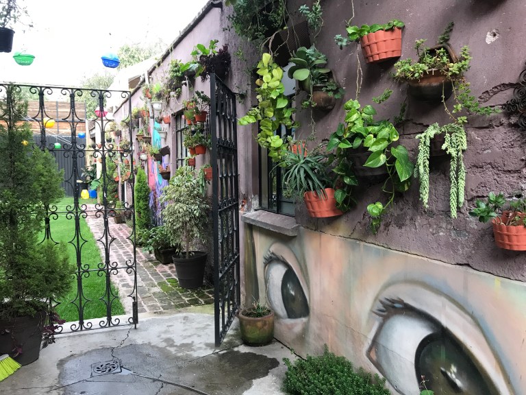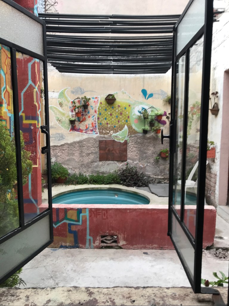 Our Airbnb is another gem! It used to be a Vecindad (small rooms for a few families) in the 1920s and is now restored with a hip vibe and lots of art and vintage furniture. It’s also next door to a 24/7 funeral parlor.