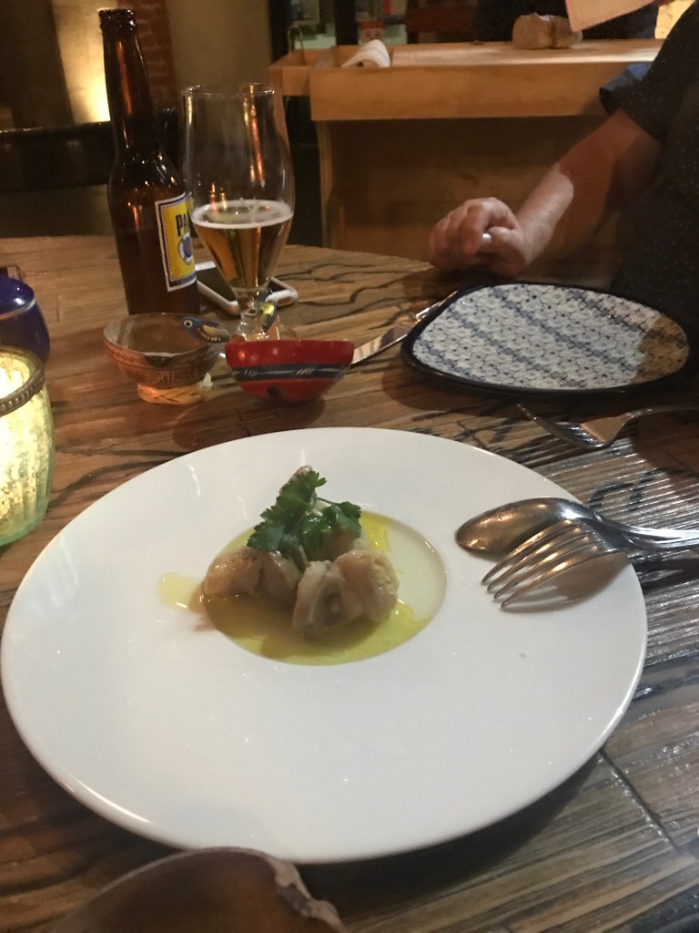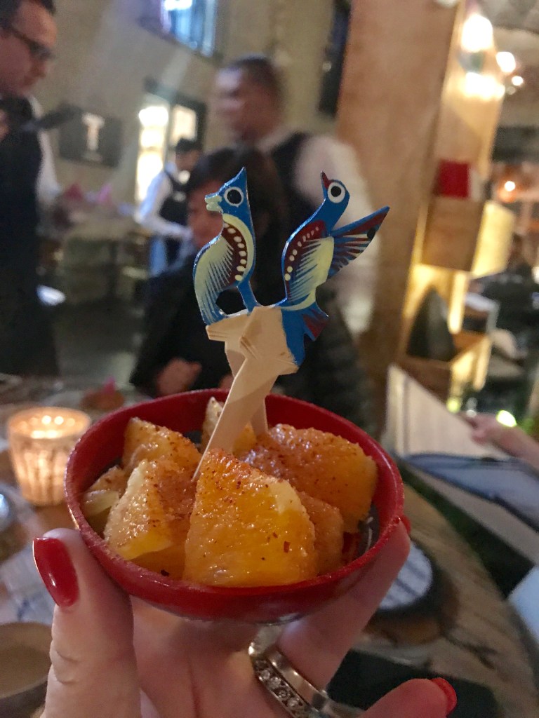 We also tried traditional mezcal served with orange and chili salt, a delicious Mexican beer (Pacifica) and a sip of Ana’s custard Apple agua fresh.