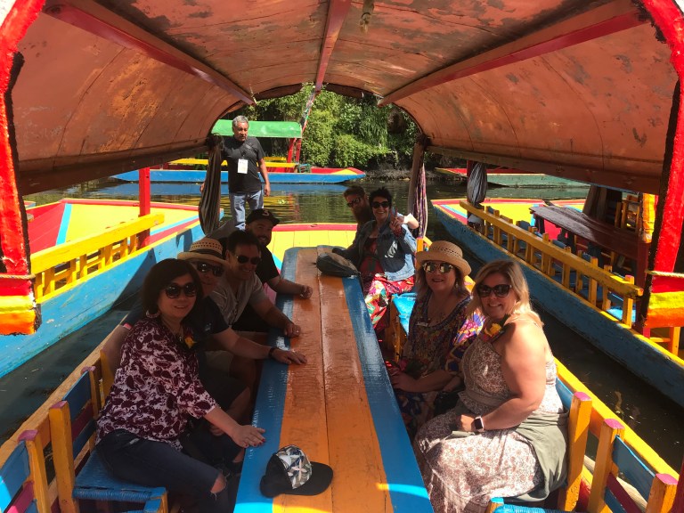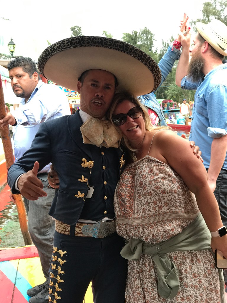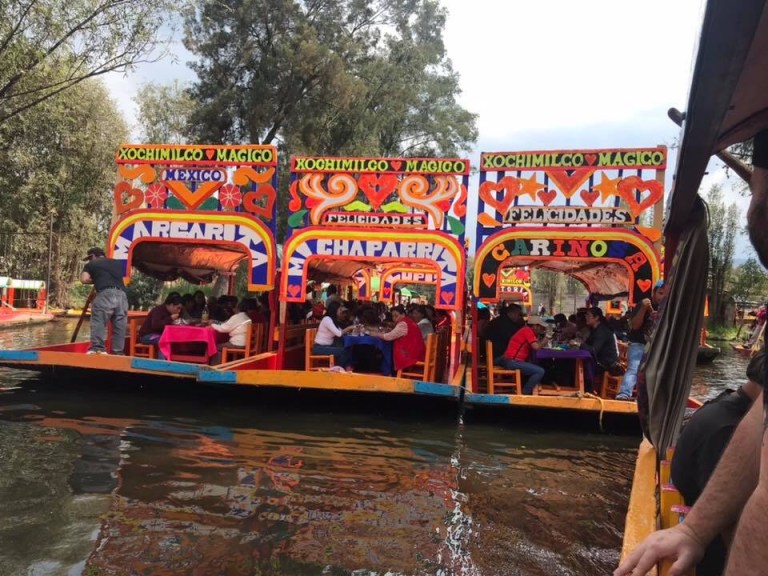 In southern Mexico City, a gritty working-class neighborhood gives way to the famous canals of Xochimilco, the last remnants of a vast water transport system built by the Aztecs. Colorful gondola-like boats take visitors on cruises while food vendors, artisans and mariachi bands float past. The atmosphere is festive,especially when you add tequila and Coronas and Rosie!