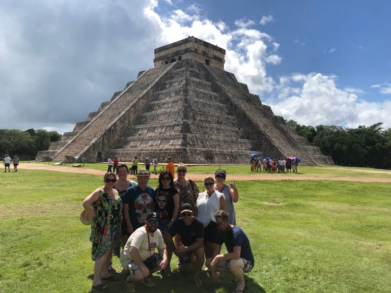 Up and out by 7am for a day trip. We grabbed coffee first and then hit the road for the two hour drive to Chichen Itza – a complex of Mayan ruins on the Yucatán Peninsula. A massive step pyramid, known as El Castillo or Temple of Kukulcan, dominates the ancient city, which thrived from around 600 A.D. to the 1200s. Graphic stone carvings survive at structures like the ball court, Temple of the Warriors and the Wall of the Skulls.