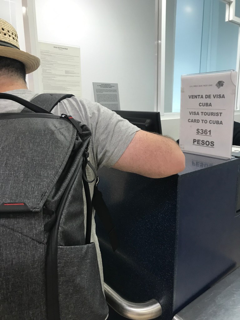 Getting our Cuban tourist visitor at the airport. There was some trepidation about this as Paula had paid $150 for hers in Australia through the travel agent. Josh trusted his Reddit research that assured him you can buy them cheap at the airport. I was nervous but he was correct. I guess travel agents need to make their money somehow now that everyone books stuff on their own.