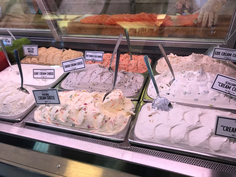 Today began as not really asleep in for me but at least a relaxed start. We left for breakfast about 9, taking the Subway to Russ & Daughter’s Jewish deli in the East Village for bagels with cream cheese and smoked salmon (so many variations of each!)