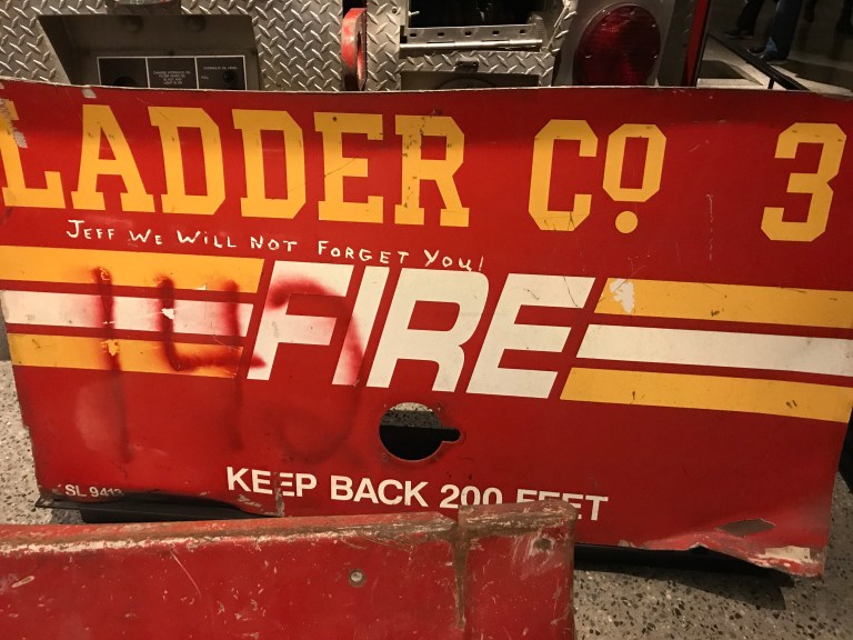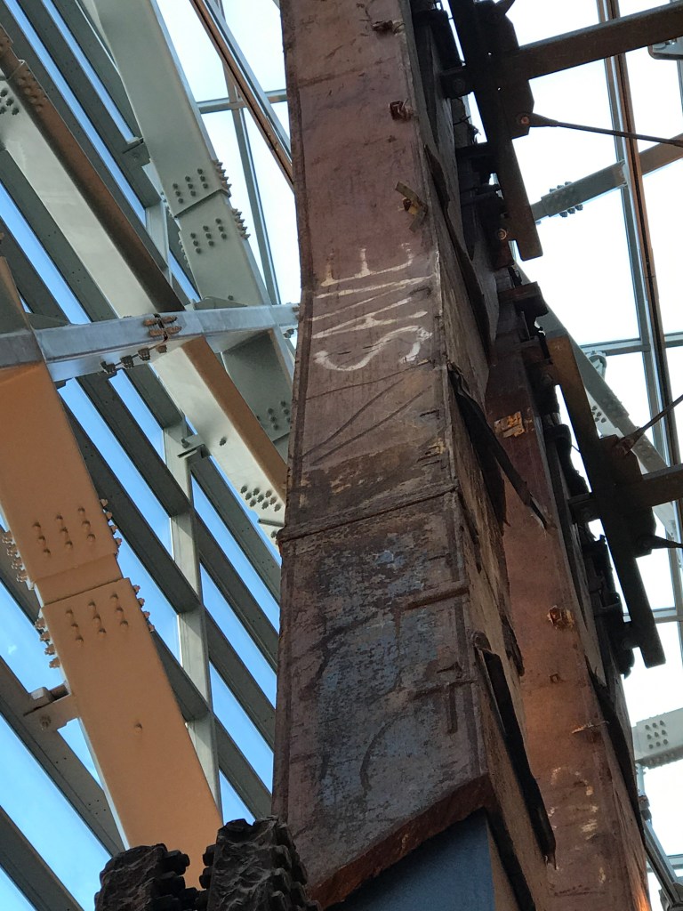 The curation included huge pieces of twisted metal, video and voice archives (survivors, tv news casts, answering machine recordings, astronauts from space looking down on NYC), objects from the rubble, airplane parts, fire trucks, uniforms, helmets, photos of people watching, pieces of paper that floated down, the ‘missing’ posters that were everywhere in the days afterward, information about the planning of the attacks, art installations, clips of movies that featured the twin towers, New Yorker covers with the towers, photos, souvenirs and postcards from before the attack’s and metal pieces cut out of the beams in the shape of crosses, hearts and Stars of David. There was also a photograph of every single person who perished.