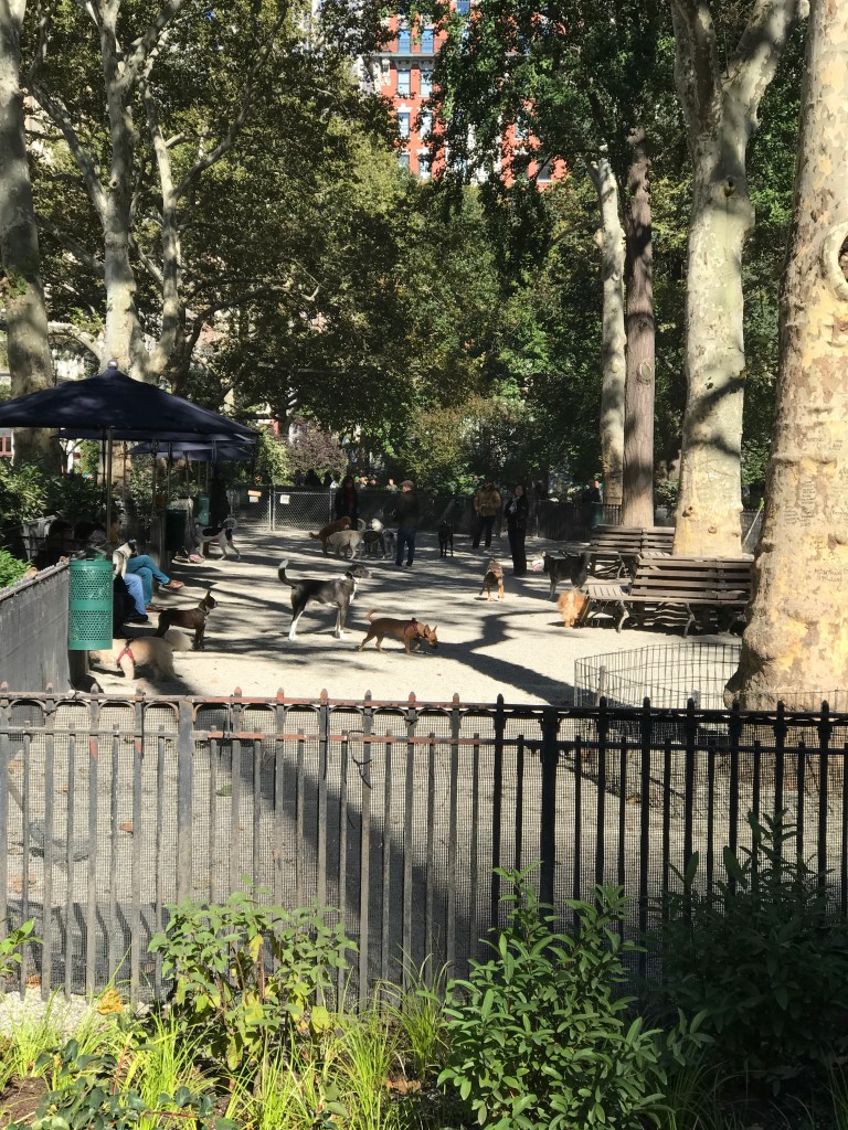 We watched the dogs in the dog park – also a Sex in the City location: where Charlotte’s dog Elizabeth Taylor suffered a doggy gang bang – and then entertained ourselves trying to get squirrels to come to us even though we had no food. I’m not sure what Josh would have done if one jumped on him.