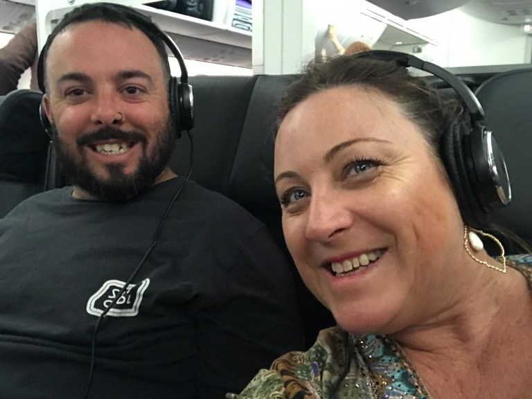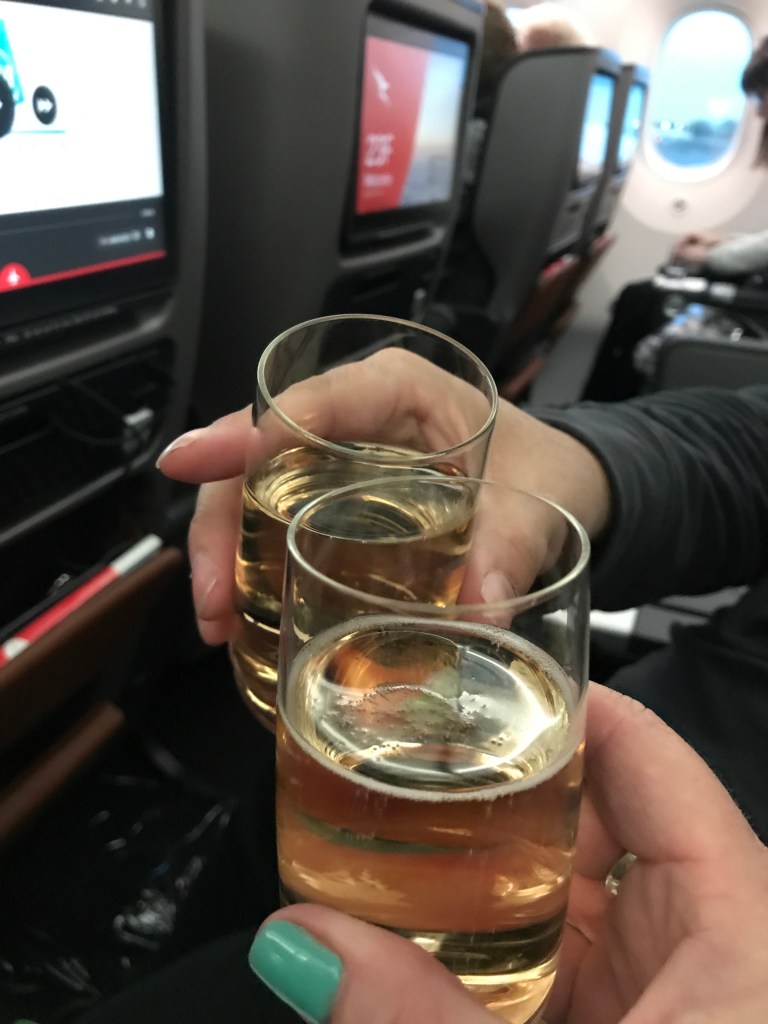 We flew with Qantas in seats designated ‘premium economy’. Not quite business class but much more recline, with a foot rest and lots of places to stow things. We were also treated to champagne, a good meal and lovely service. That cliche about how good it is to hear an Australian accent after traveling – well it’s true. We felt comforted and at home.
