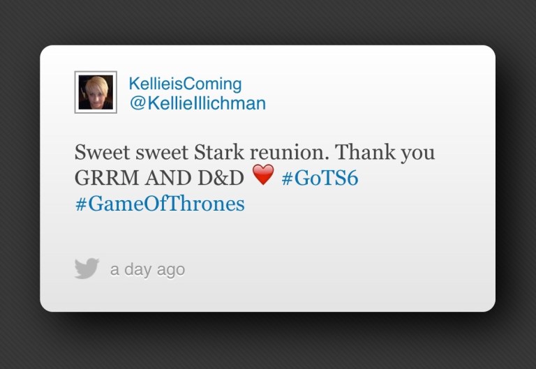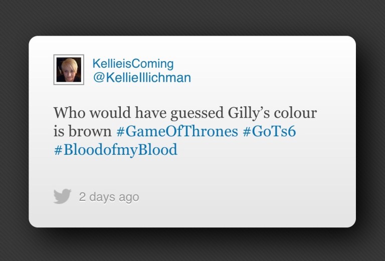 Every season after that I would get involved in the recaps, the post episode discussions and curtain calls for fallen friends and enemies. Being featured in the Twitter recaps was such a high light! I longed to ‘live tweet’ and was able to many times (thanks to school and public holidays) despite being in a different time zone.