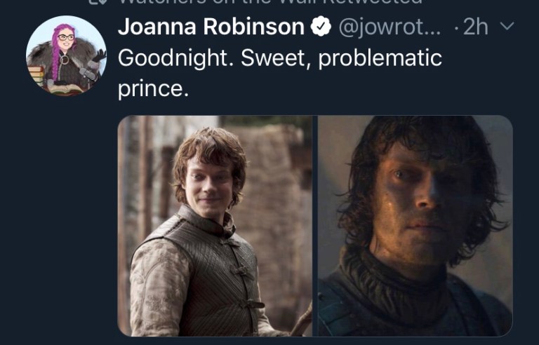 My first theorizing came with my friend Roald (who has loved the books since 1996). The show brought it all alive for him and the only theory we’ve ever been right about is R+ L = J. Oh boy was he hurt when Arya killed the Night King!