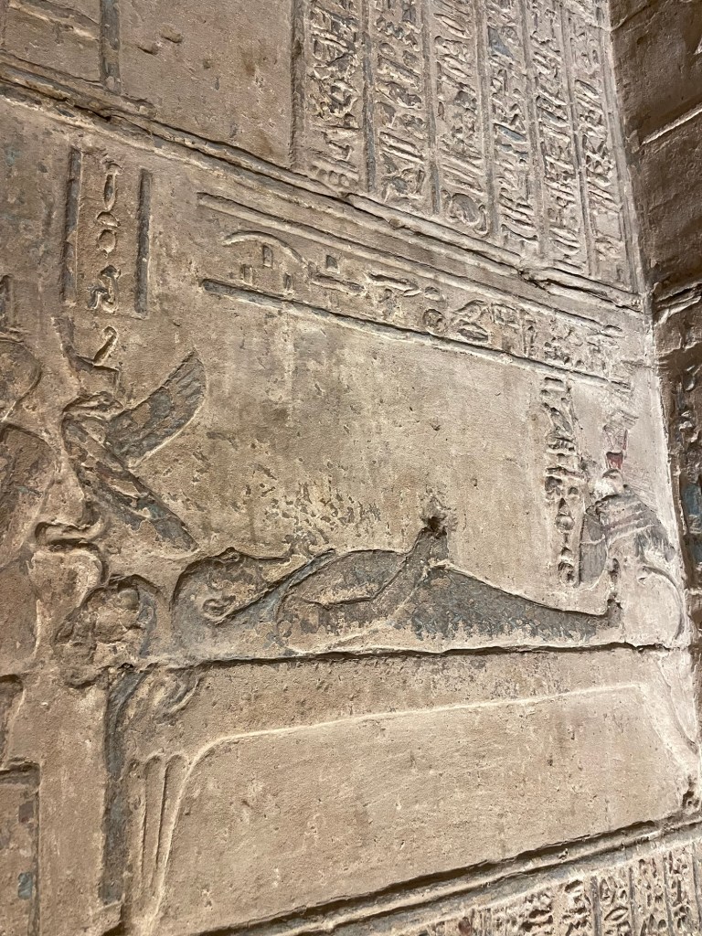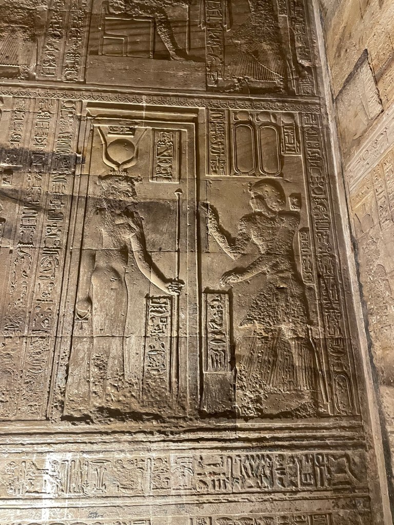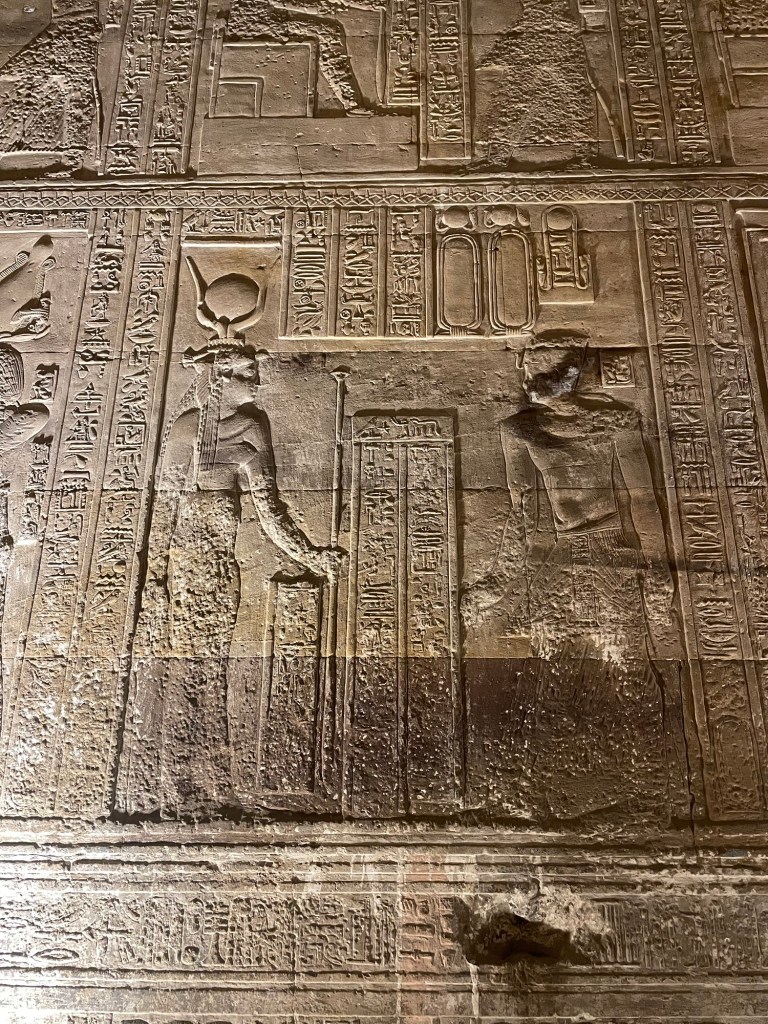 And then, just casually, on the outer rear wall – the famous Cleopatra VII and little Caesarion (the son she had with Julius Caesar) relief. There she was. carved into stone, still poised and regal two thousand years later.