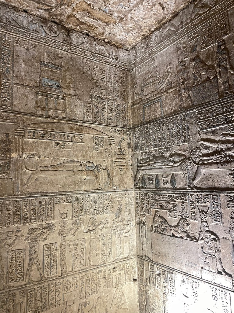 The reliefs in here show the king approaching the doors, knocking, gaining entrance and conversing with Hathor.