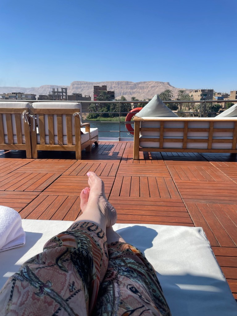 After Dendera, we sailed toward Luxor, watching palm groves, sun-washed villages, and water buffalo drift by like a moving postcard. Nile cruising forces you to slow down; it’s impossible to rush when the river itself refuses to hurry.