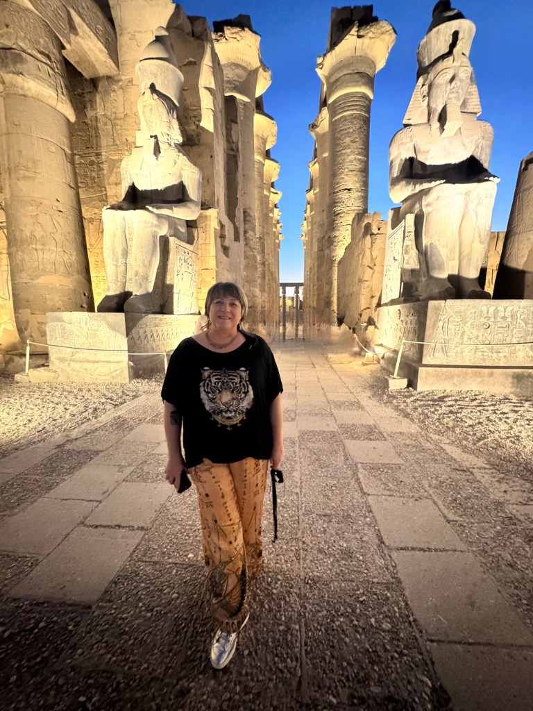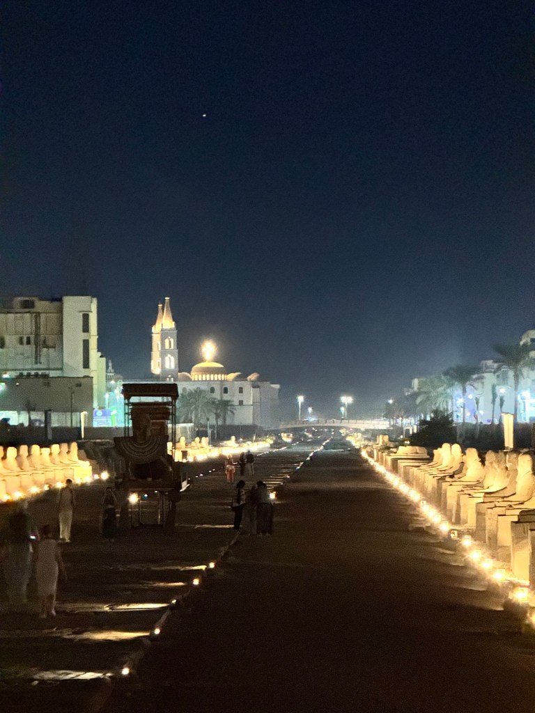 Outside, the sky faded to indigo, and the first electric lights began to illuminate the avenue of sphinxes stretching toward Karnak — a stone pathway tying temples, eras, and travelers together.