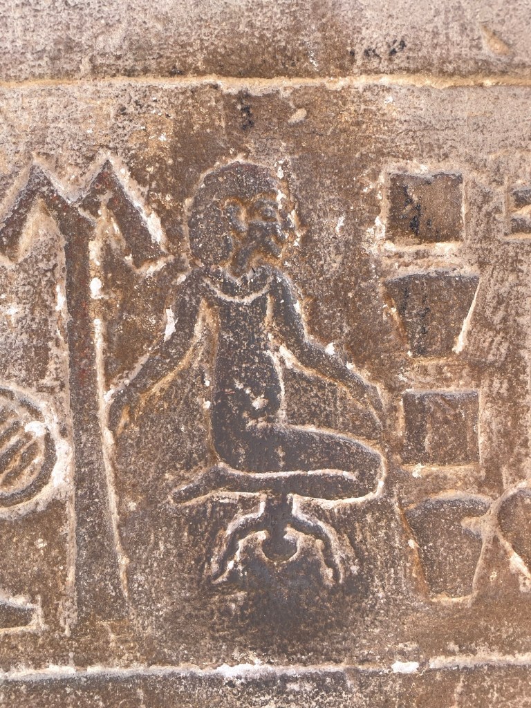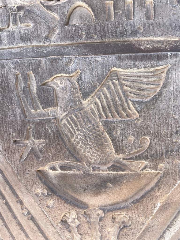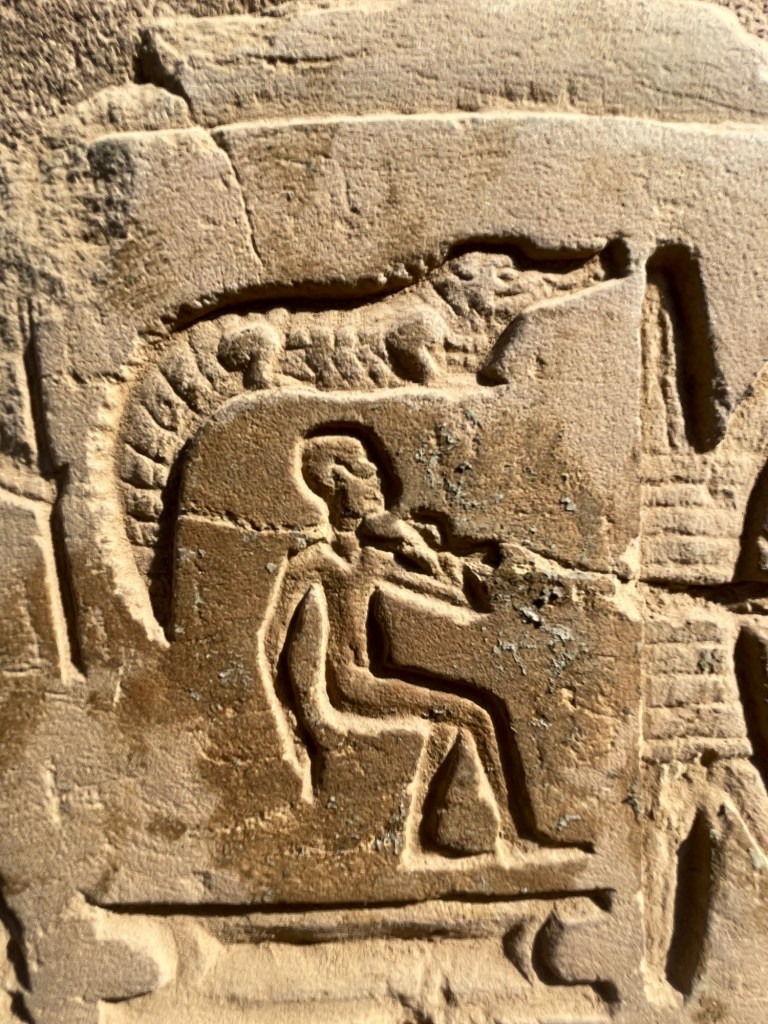 One of the moments that stayed with me at Kom Ombo wasn’t one of the famous reliefs at all, but a quieter one- the goddess Seshat, patron of writing, wisdom, and record-keeping. She’s carved lightly into the stone, poised with her palm-rib pen and her starry headdress, the ancient guardian of knowledge itself.