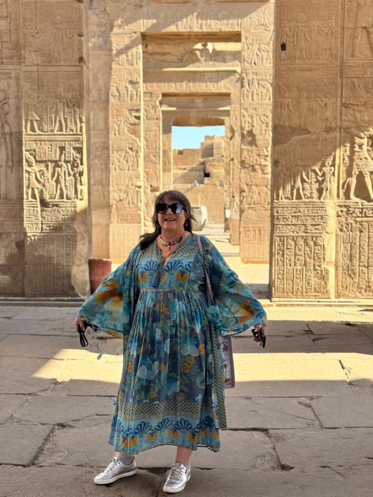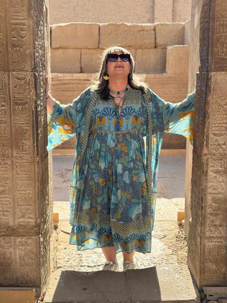 It was the perfect end to a wildly varied day: ancient medical carvings, singing children on surfboards, surprise souvenir ambushes, and tea in a hotel fit for mystery novel royalty. Egypt does that: it folds the sacred, the chaotic, the humorous, and the breathtaking into a single day without ever feeling disjointed. You move from birth scenes carved in stone to crocodile gods to a drumbeat on the river to a sunset that feels almost scripted. And somehow it all fits, all threads of the same long story.