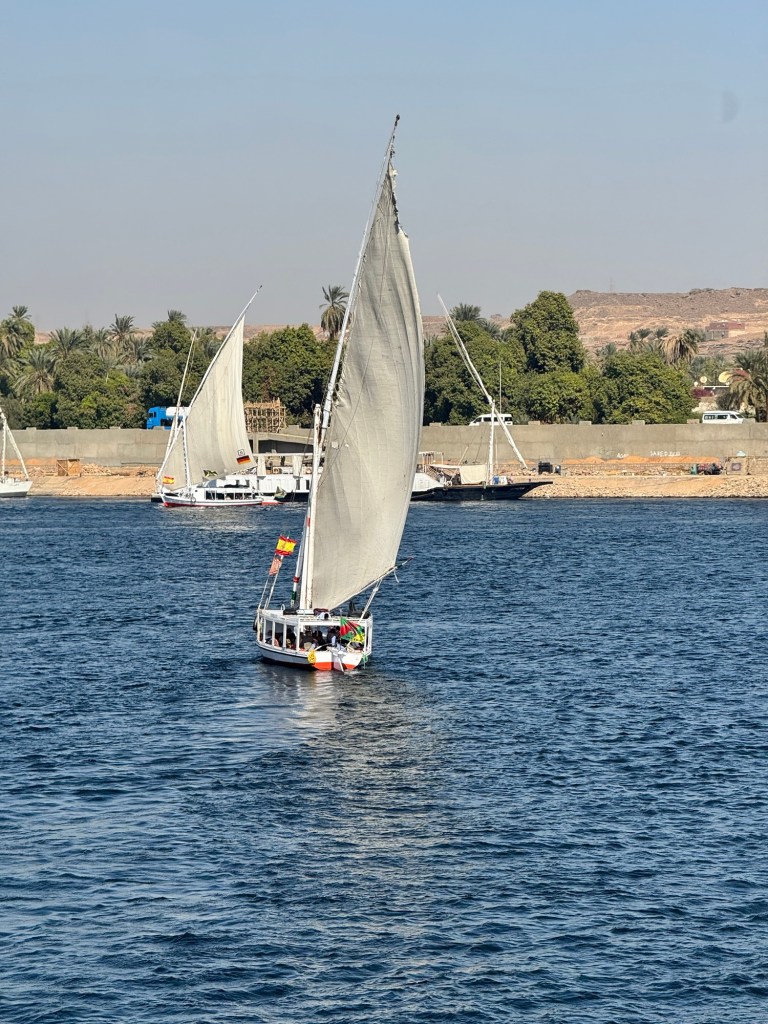 Later, in Aswan, we boarded a felucca, ready for that iconic slow-sail moment with the white triangle of the sail catching the wind like something out of a postcard.
