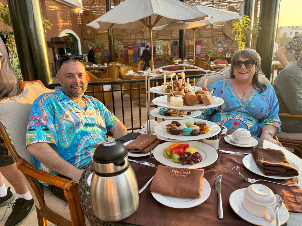After the felucca theatrics, we dressed up for something truly special: afternoon tea at the Old Cataract Hotel, where Agatha Christie wrote Death on the Nile.